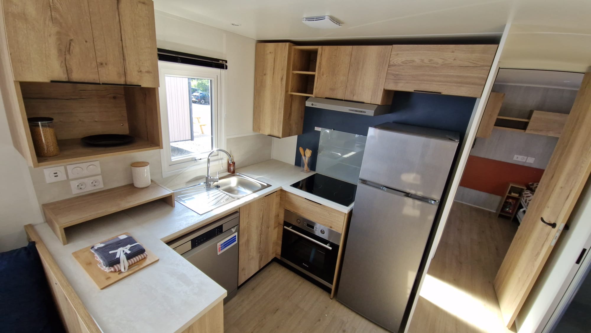 Willkommen im Rapidhome Bora Bora: ein modernes, nachhaltiges Chalet mit drei Schlafzimmern, begehbarem Kleiderschrank, getrenntem Bad und WC – vollständig elektrisch und mit Solarpanelen ausgestattet. Ideal für umweltbewusste Genießer!