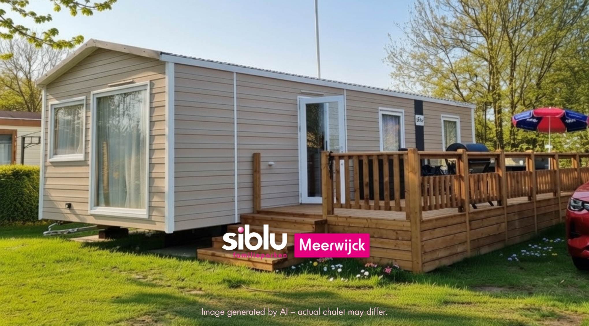 Dieses 6-Personen-Chalet ist komplett elektrisch, steht bereits im Park und wird mit einer großen Holzveranda (7,5 x 3 Meter) sowie einem vollständigen Inventarpaket geliefert. Einfach einziehen und genießen – oder direkt vermieten!