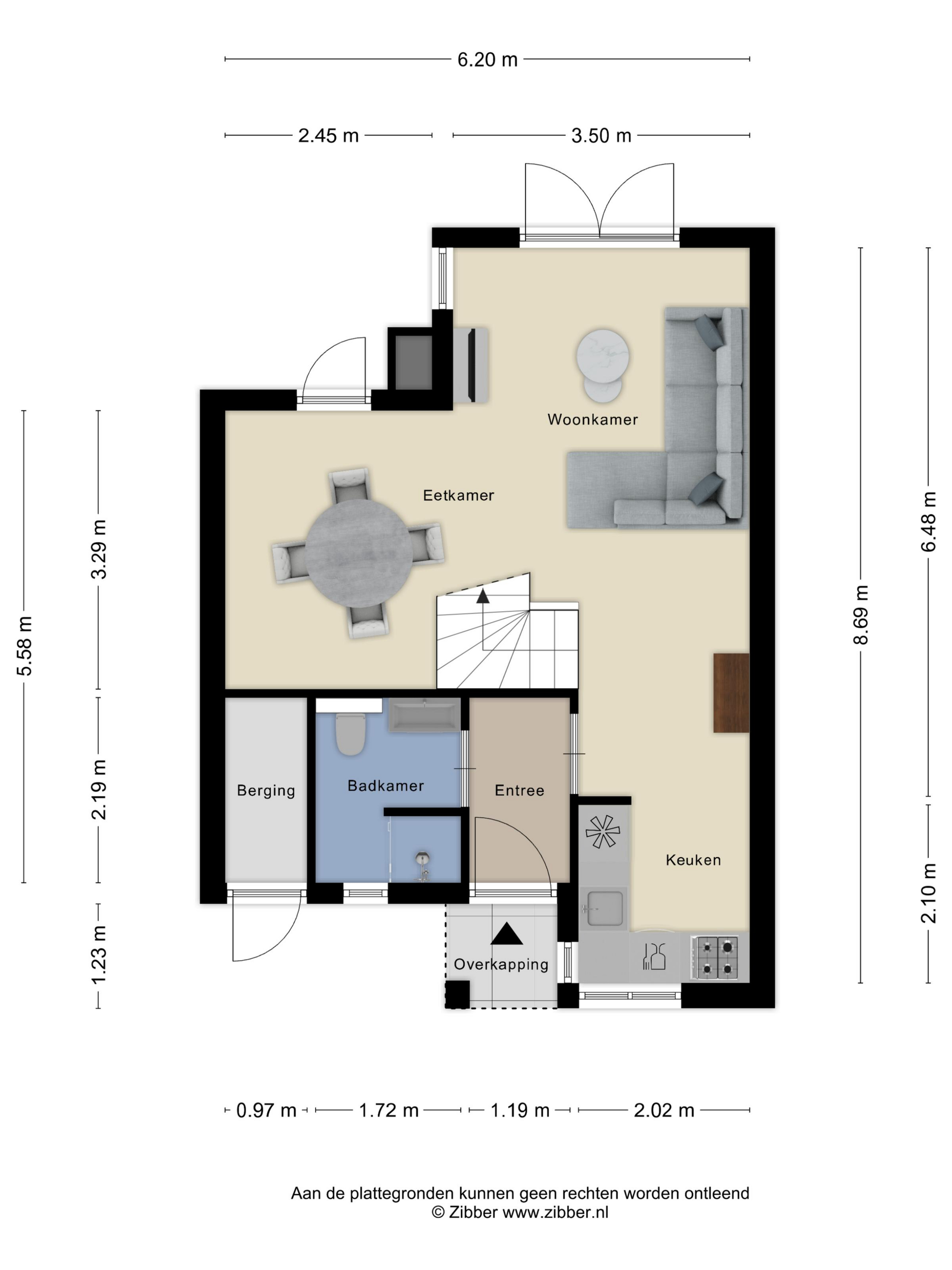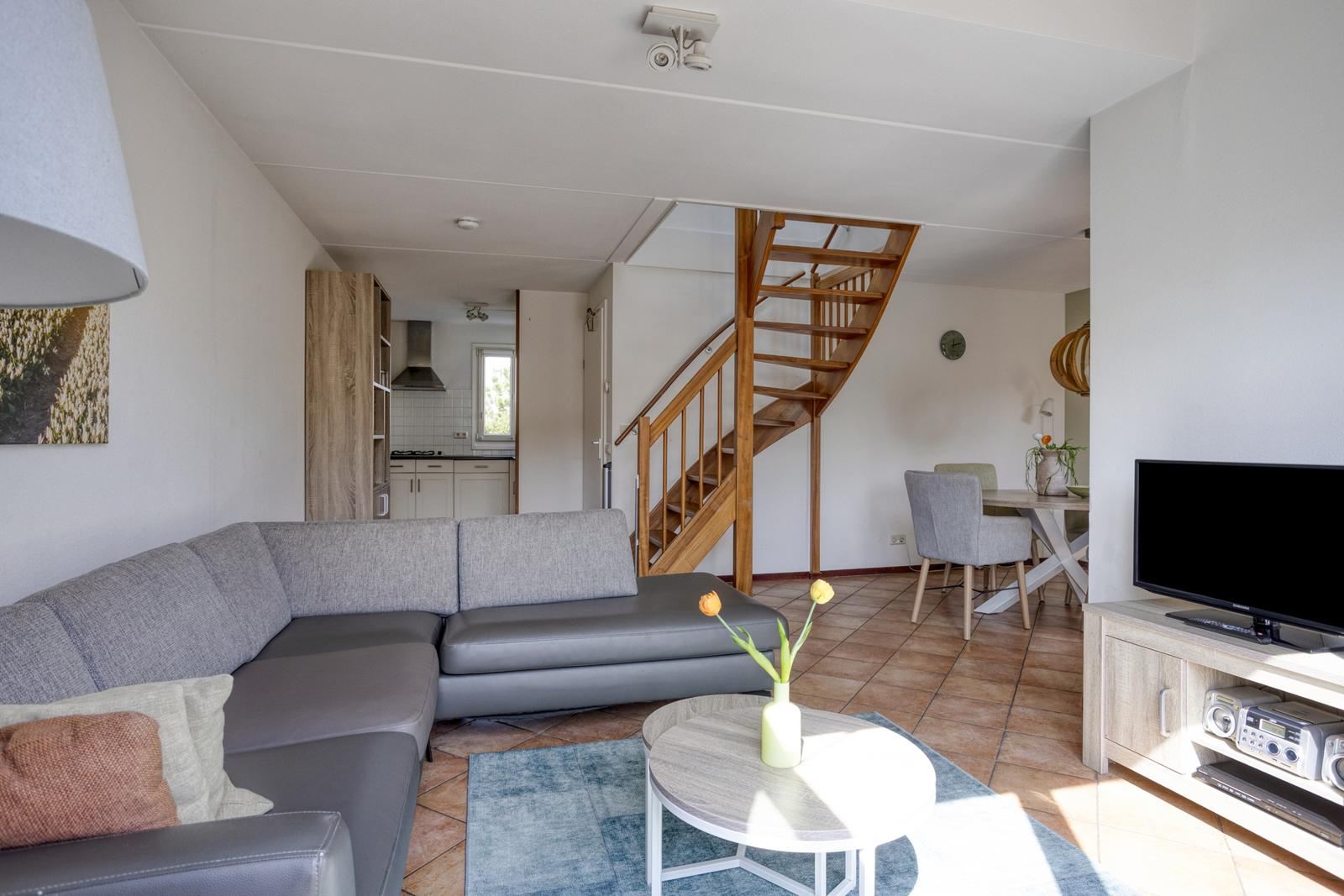 De lichte woonkamer vormt het hart van deze hoekwoning en nodigt uit tot ontspanning. De ruime L-vormige bank biedt plaats aan het hele gezin, terwijl de openslaande deuren naar het zonnige achterterras zorgen voor een naadloze overgang tussen binnen en buiten. De moderne inrichting met warme houten accenten creëert een sfeer waarin je direct thuisvoelt. Door de hoekligging geniet je van extra ramen en daglicht, wat de ruimte nog groter doet aanvoelen dan de al royale afmetingen.