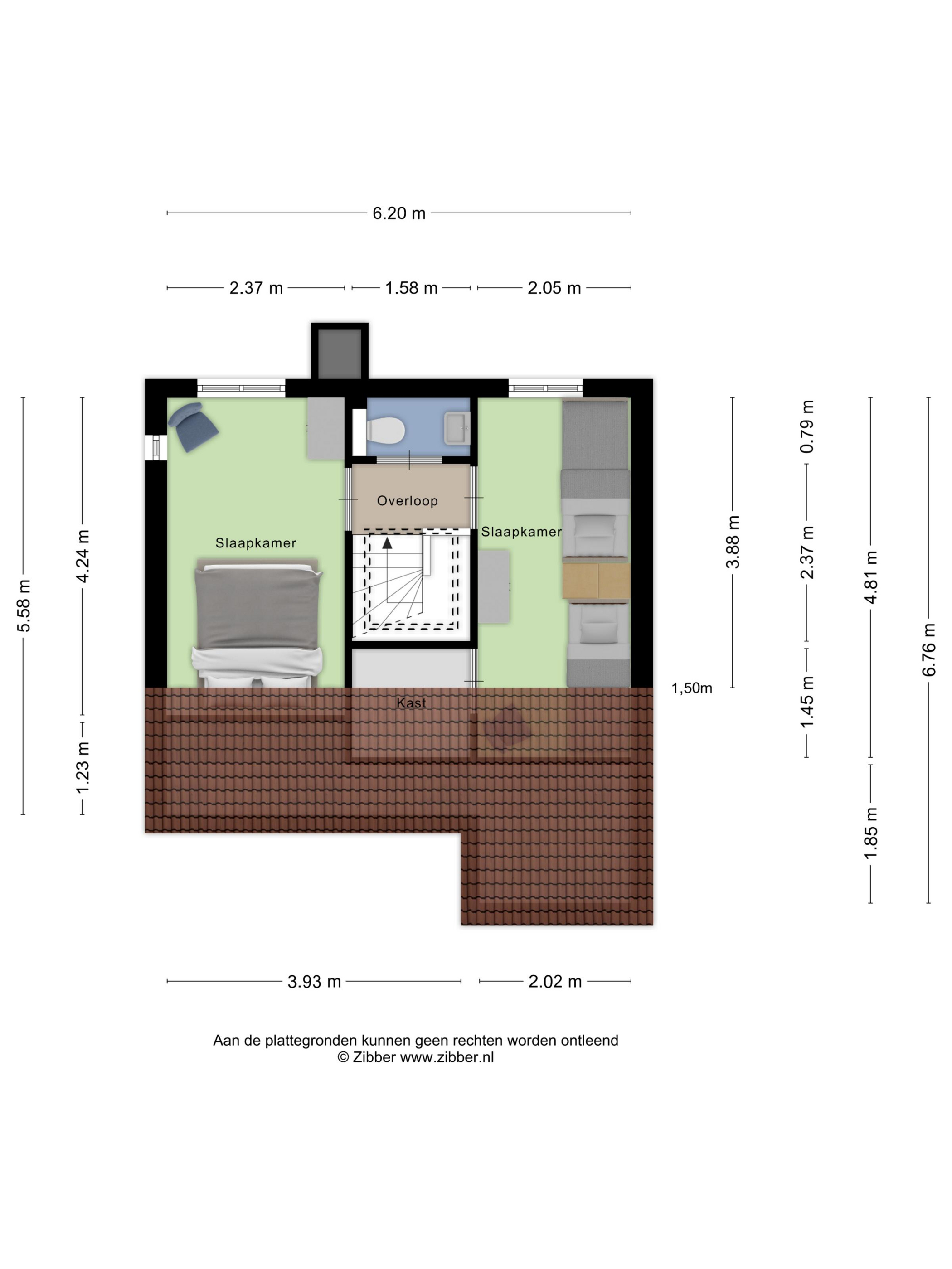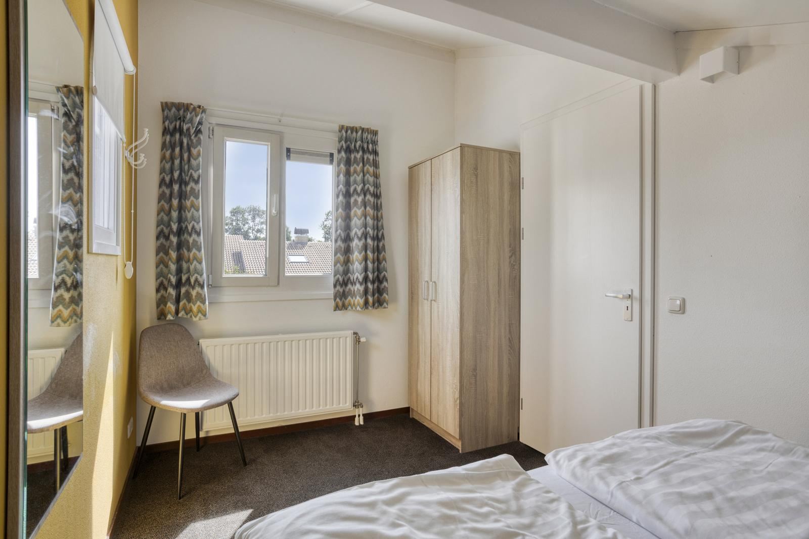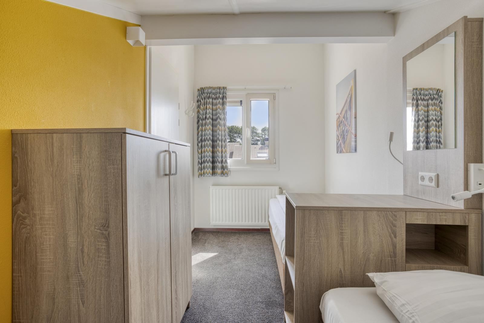 De tweede slaapkamer beschikt over twee comfortabele eenpersoonsbedden en is perfect voor kinderen of gasten. De praktische inrichting met bureau en spiegelkast maakt deze ruimte multifunctioneel. Door de slimme indeling voelt de kamer ruim aan en biedt alle comfort voor een goede nachtrust.