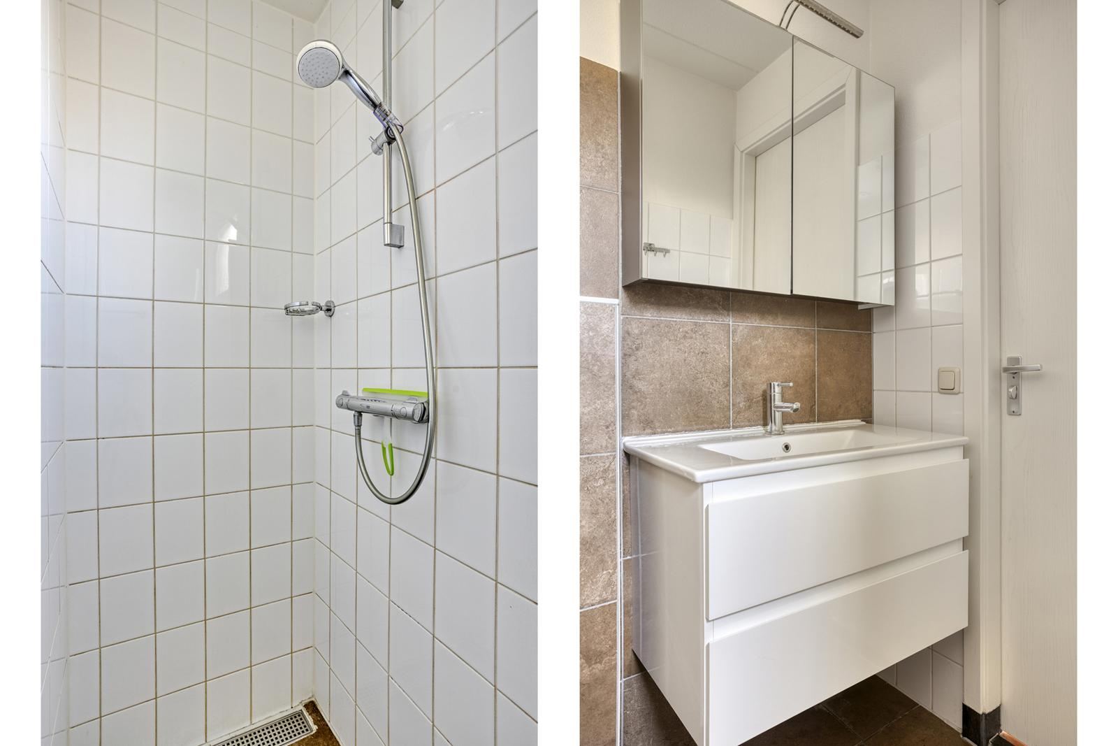 De moderne badkamer beneden is een oase van comfort met vloerverwarming voor extra luxe. De stijlvolle wastafel met spiegelkast, het hangend toilet en de ruime inloopdouche met regendouche zorgen voor alle gemakken. De hoogwaardige afwerking met moderne tegels maakt elke start van de dag tot een plezier.