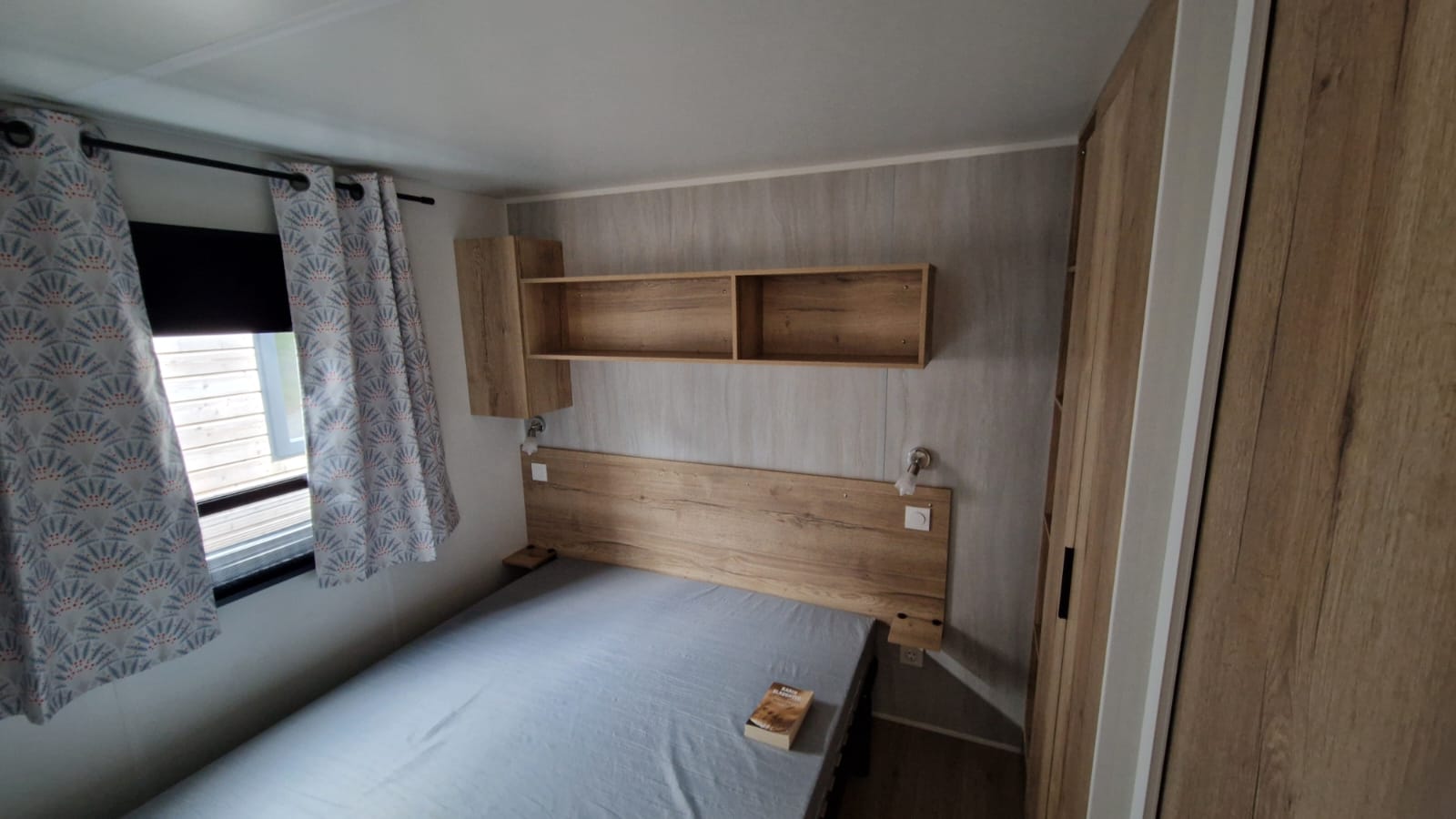 De tweede slaapkamer is ideaal als kinderkamer, logeerkamer of multifunctionele ruimte. Met twee aparte bedden en handige kastruimte is deze kamer compact maar efficiënt ingericht. Perfect voor gasten of (klein)kinderen die mee komen genieten van het chalet.
