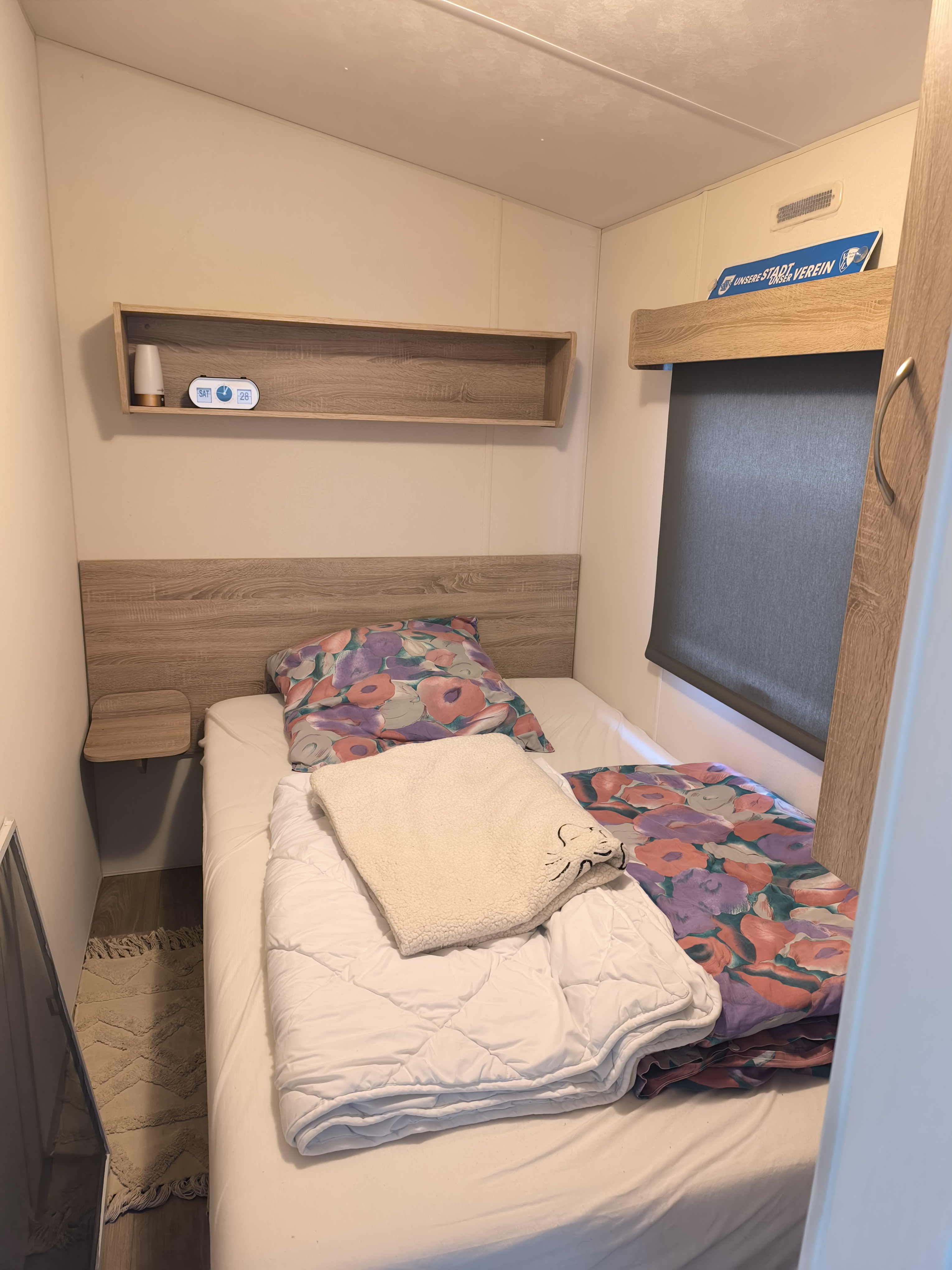 Wir verkaufen unser Chalet Delta Resort aus dem Jahr 2018 auf dem Campingplatz Wite Burch in Bakhuizen in der Nähe zum Ijsselmeer . Der Platz wird nicht umstrukturiert . Wir sind erst letztes Jahr auf diesen neu angelegten Platz hingestellt worden .Alles ist neu ( Hütte , Vordach ,Terrasse,Solardusche ,Teakholz Garnitur ). Auch im Inneren haben wir einiges erneuert . Das Sofa ist im Juni gekauft worden ,das große Bett ist ebenfalls neu . Geschirr ,Töpfe auch neu . Das Chalet wird mit einer elektrischen Heizung geheizt außerdem haben wir noch Infrarotheizung im Chalet . Vom März an bis zum November darf man darin übernachten .Nutzbar das ganze Jahr .Die Pacht beläuft sich auf ca 2900€.Es ist ein Familien geführter Campingplatz mit einem großen Spielhaus und Spielplätze . Ruhig gelegen und trotzdem mit dem Fahrrad alles zu erreichen . Der Strand ist ca.10 min. mit dem Fahrrad entfernt . Hunde sind auch erlaubt . Wir müssen nicht verkaufen aber die berufliche Situation lässt uns kaum eine andere Wal . Für mehr Informationen bitte melden . Besichtigung nur an einem Wochenende möglich .