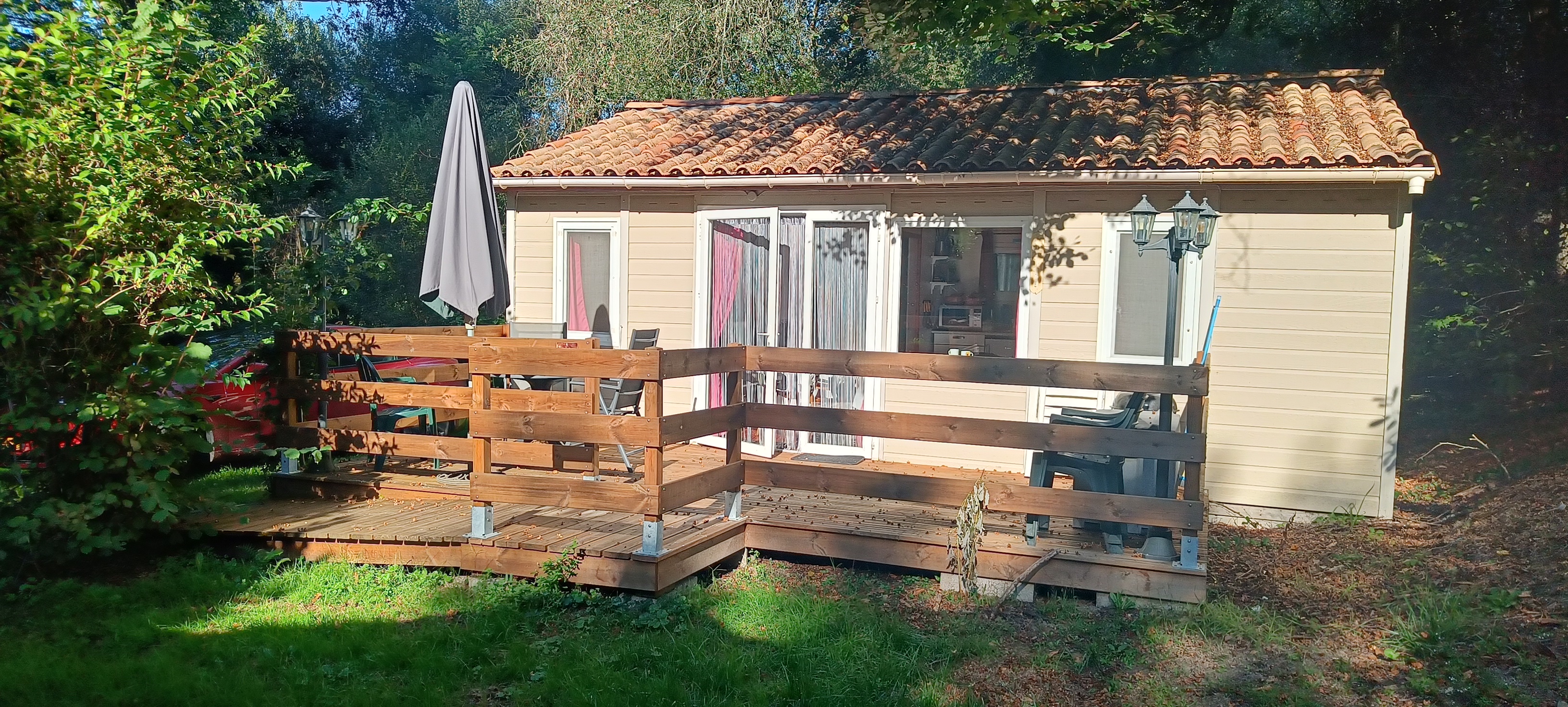 Te koop: charmant vakantiechalet op kasteelcamping Le Verdoyer in de Dordogne