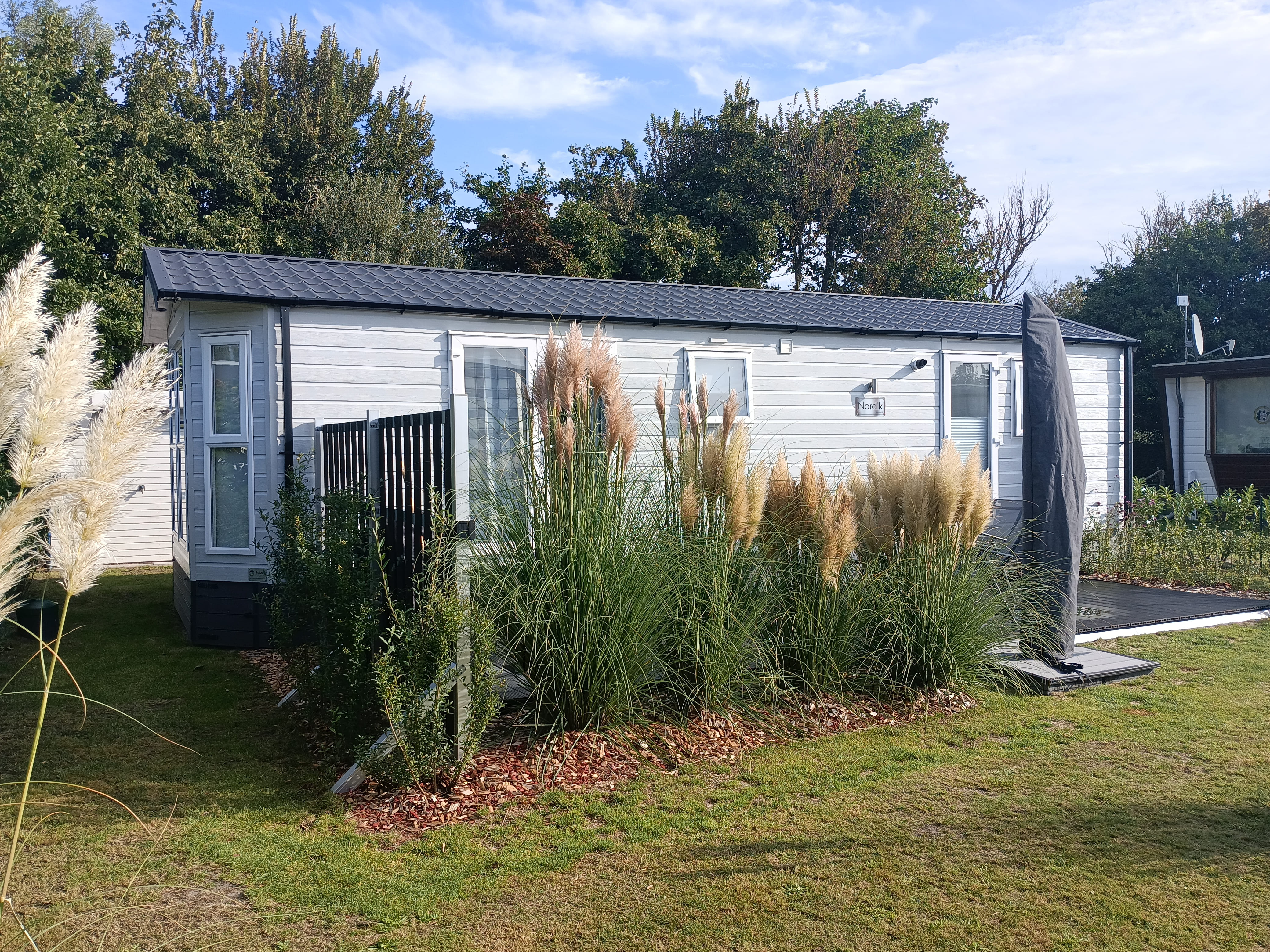 Im Park gibt es für Jung und Alt genug zu entdecken. Restaurant, Snackbar, Kinderspielplatz, Kinderanimation, Schwimmbad und vieles mehr. Das Chalet steht im hinteren Parkteil, am Ende eines Stichweges, dahinter nur Blumenfelder . Platzgröße 250qm.