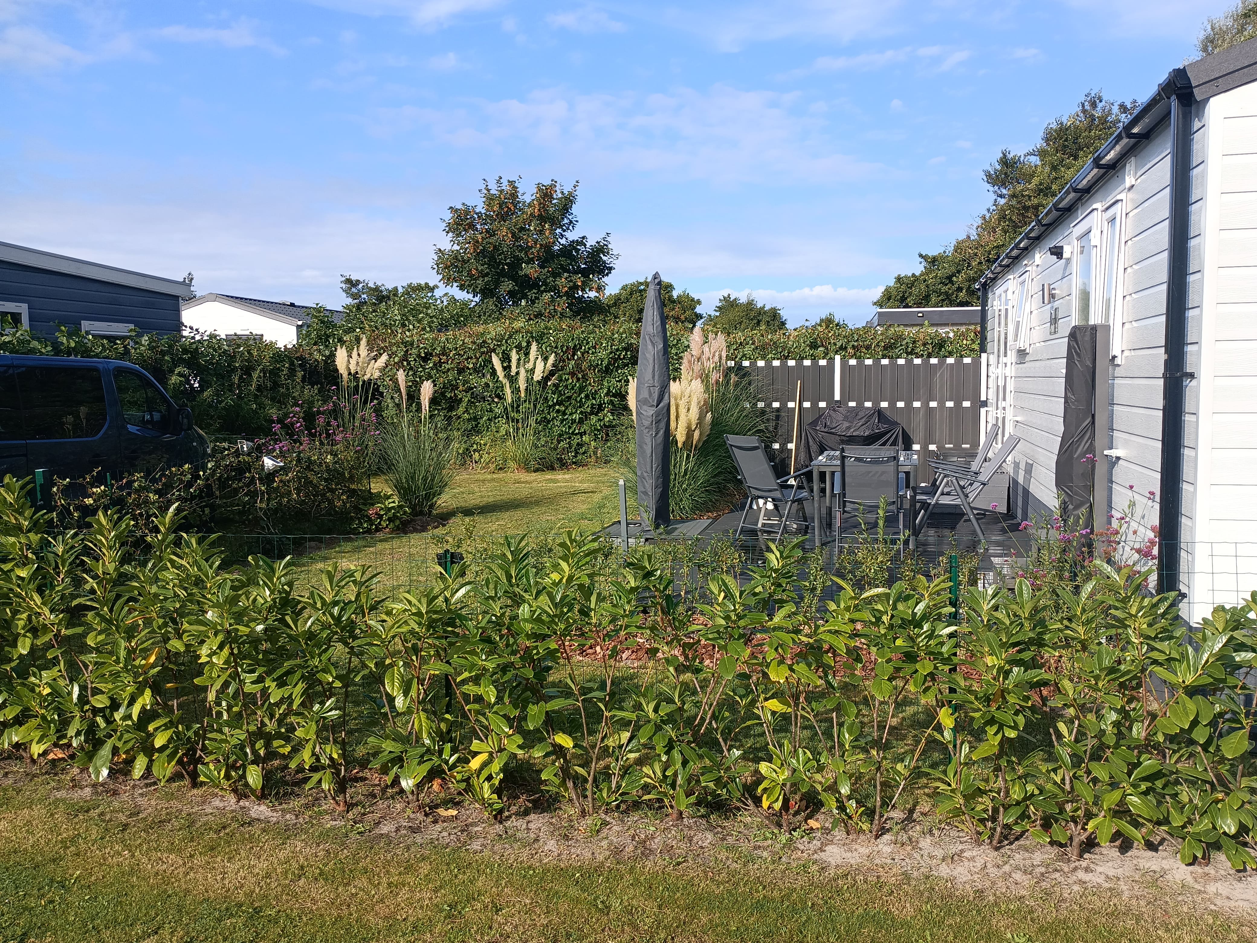 Hunde erlaubt, eingezäunt! Ringsum Hecken! Viel Grün!