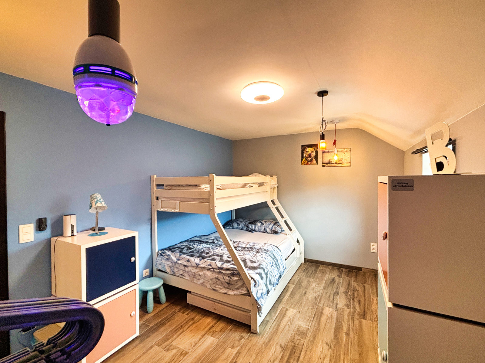 Hoog gelegen aan het einde van een rustig pad, omringd door de weelderige natuur van de streek rond La Roche-en-Ardenne, staat dit prachtige, moderne vakantiehuis voor 10 personen – een echte, zeldzame parel – dat uitnodigt tot rust, ontspanning en gedeeld geluk. Vanaf het terras wordt u betoverd door een adembenemend panoramisch uitzicht op de beboste heuvels, een decor als op een postkaart, dat met de seizoenen mee verandert. De sfeer is ideaal voor romantische avonden bij zonsondergang of voor rustige ochtenden met het gezang van de vogeltjes. Geniet van de onvergelijkbare ontspanningsmomenten dankzij een buitenjacuzzi onder de sterrenhemel en een privésauna binnen – allemaal in een moderne en elegante setting. Hier wanen de kinderen zich in het paradijs: een grote buitenspeeltuin, een boomhut en zelfs een fantastische binnenspeelruimte met privébioscoop, tafelvoetbal, biljart, spelconsoles en nog veel meer – genoeg om jong en oud urenlang te vermaken.