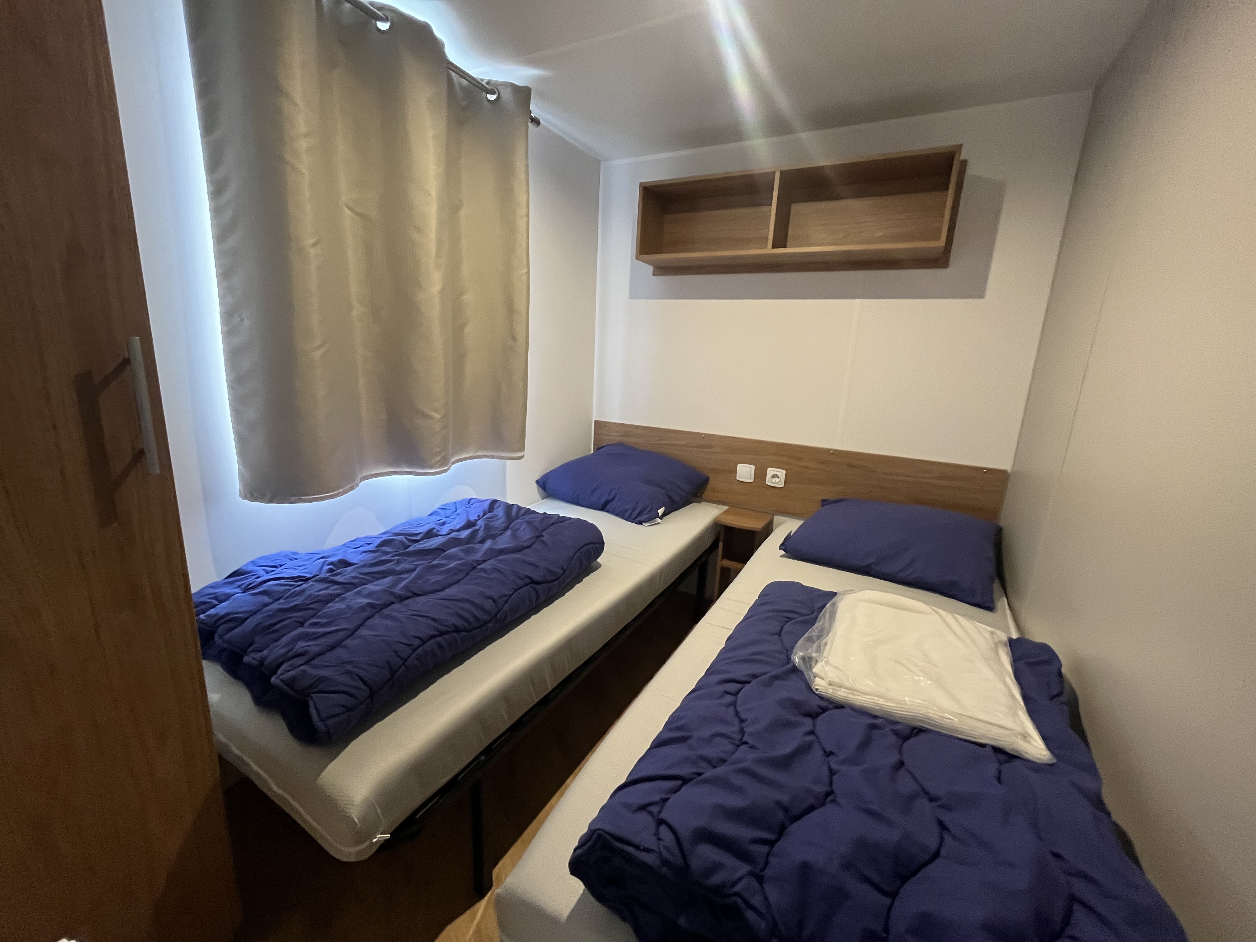 De master suite biedt comfort en privacy, voorzien van een eigen badkamer en toilet. Bovendien is er meer dan voldoende opbergruimte, waaronder een inbouwkast bij de entree – handig voor jassen, schoenen of andere vakantiespullen.