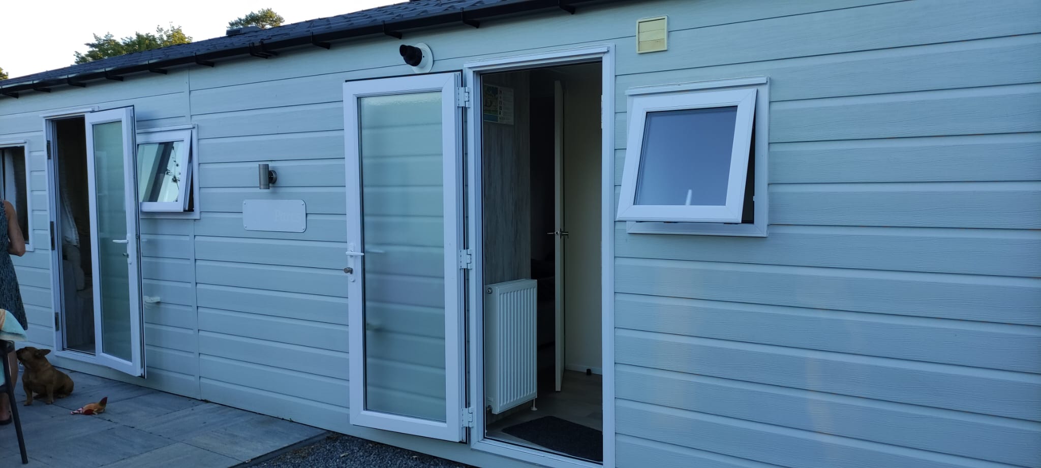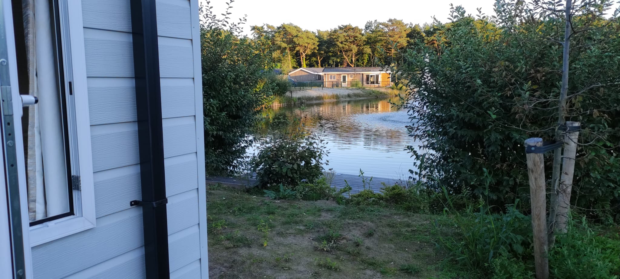 4-persoons chalet, met eigen steiger. Op mooi park, met klein zwembad en zwemvijver.