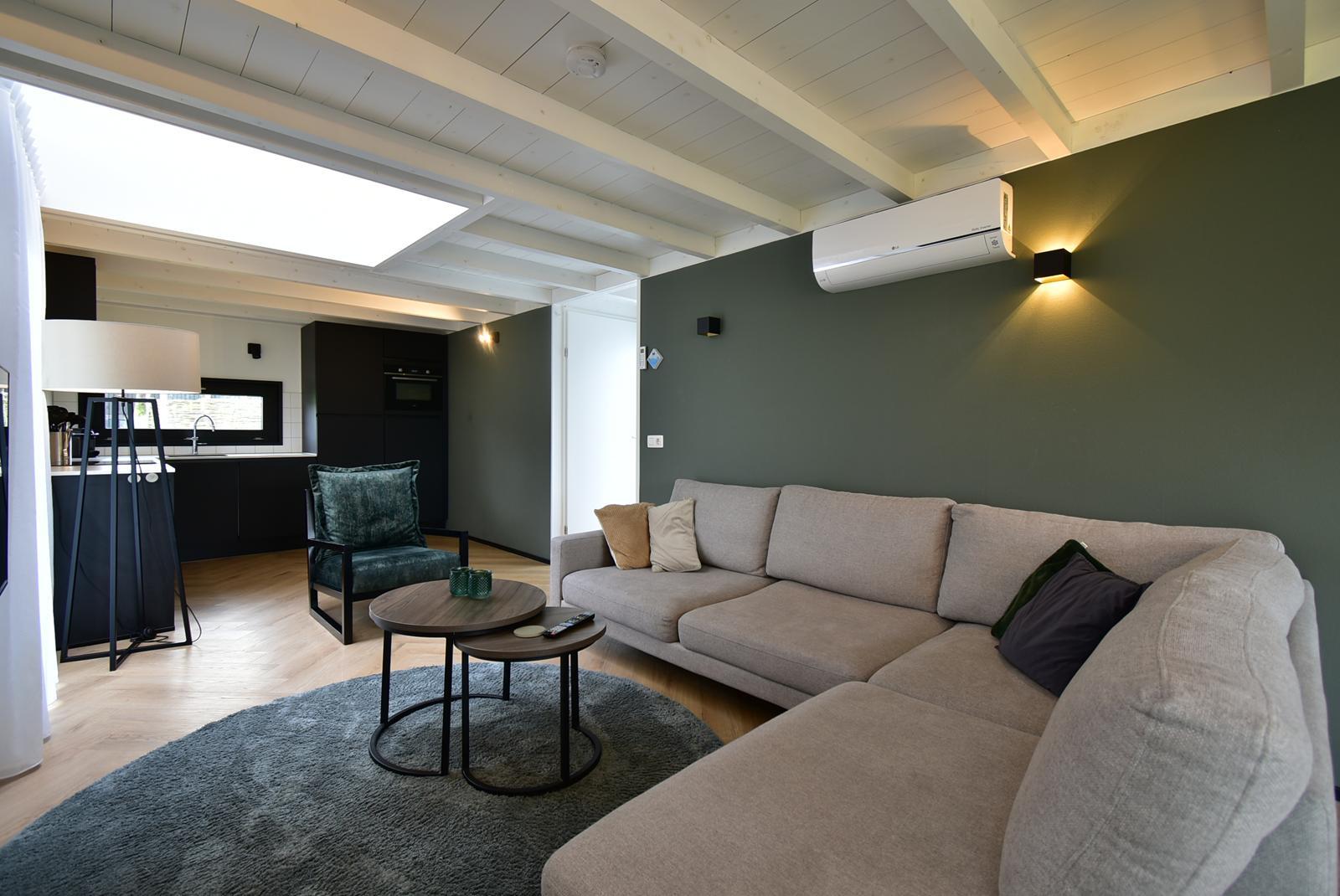 De woonkamer is licht en modern ingericht, met grote raampartijen en een praktische indeling die mooi doorloopt naar de eethoek. De airco draagt bij aan comfort in alle seizoenen en met de open keuken houdt u altijd contact met de woonkamer.