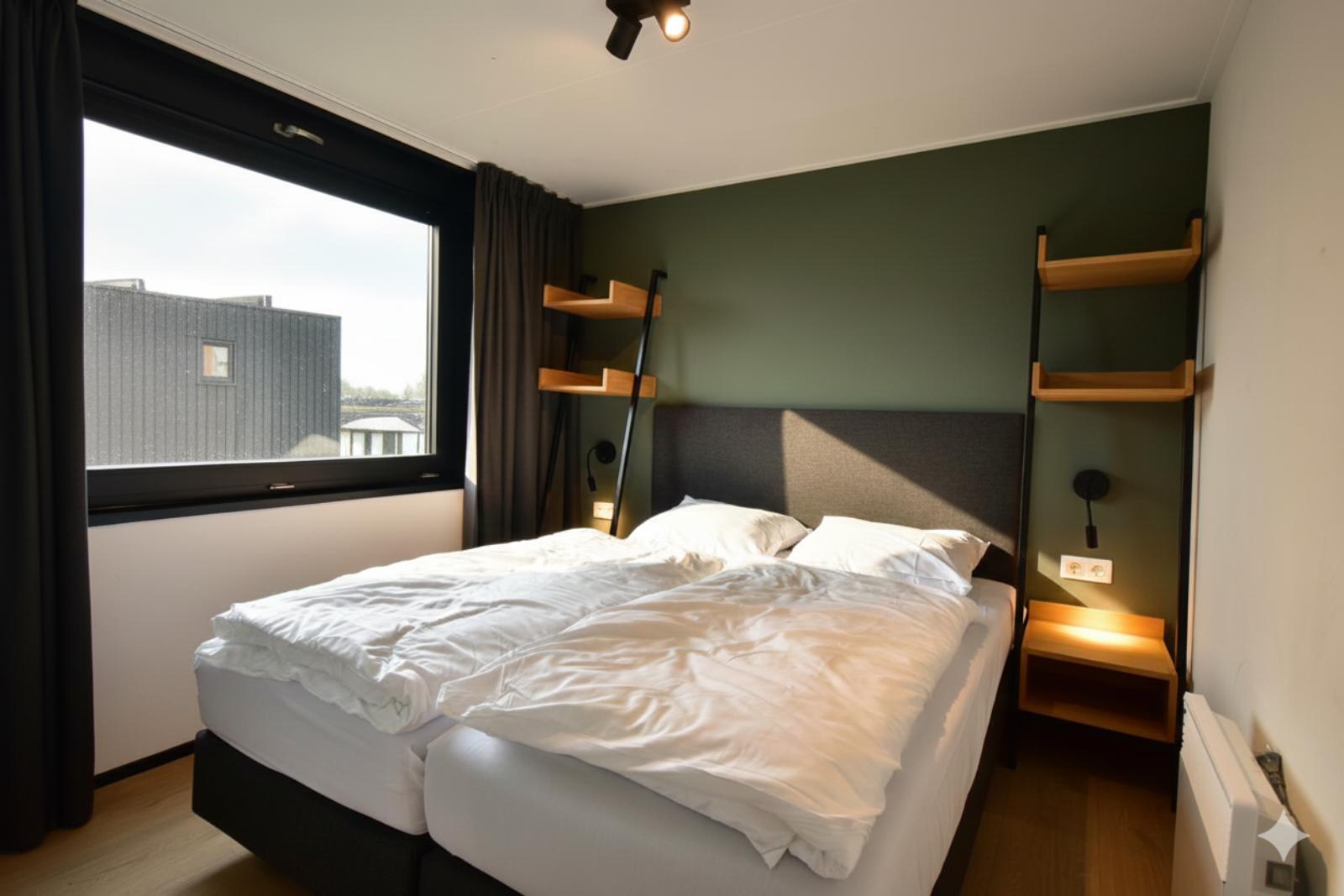 Slaapkamer 1 is een rustige tweepersoonskamer met veel daglicht en directe toegang tot het balkon, met vrij uitzicht richting de polder. Deze slaapkamer heeft een en-suite badkamer.