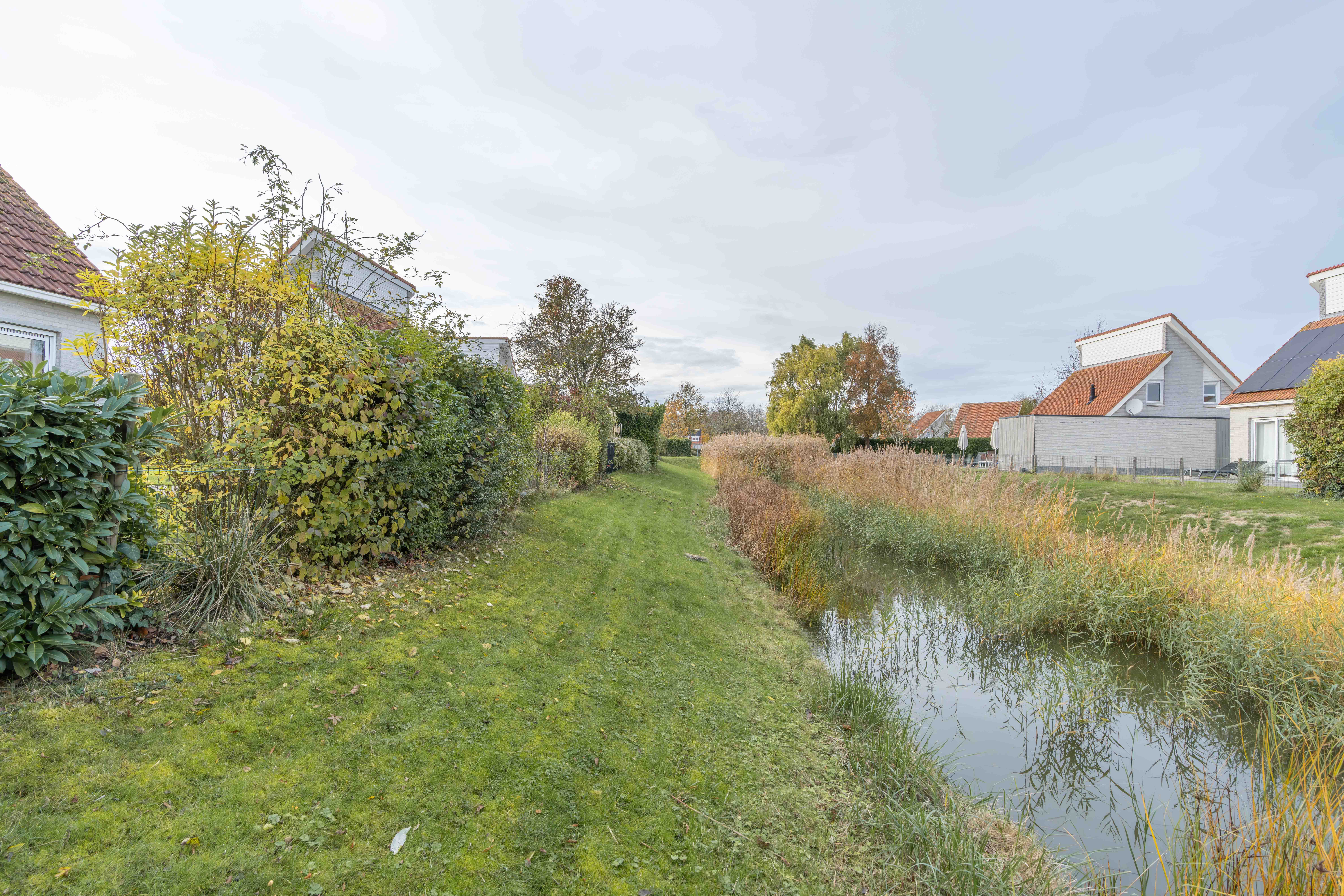 De woning bevindt zich op een zeer aantrekkelijke locatie binnen het park: in een doodlopende straat (alleen bestemmingsverkeer) met aan de ene zijde een fraai grasveld met vijver en aan de andere zijde een groenstrook met sloot. Hierdoor ervaart u veel rust, ruimte en privacy.