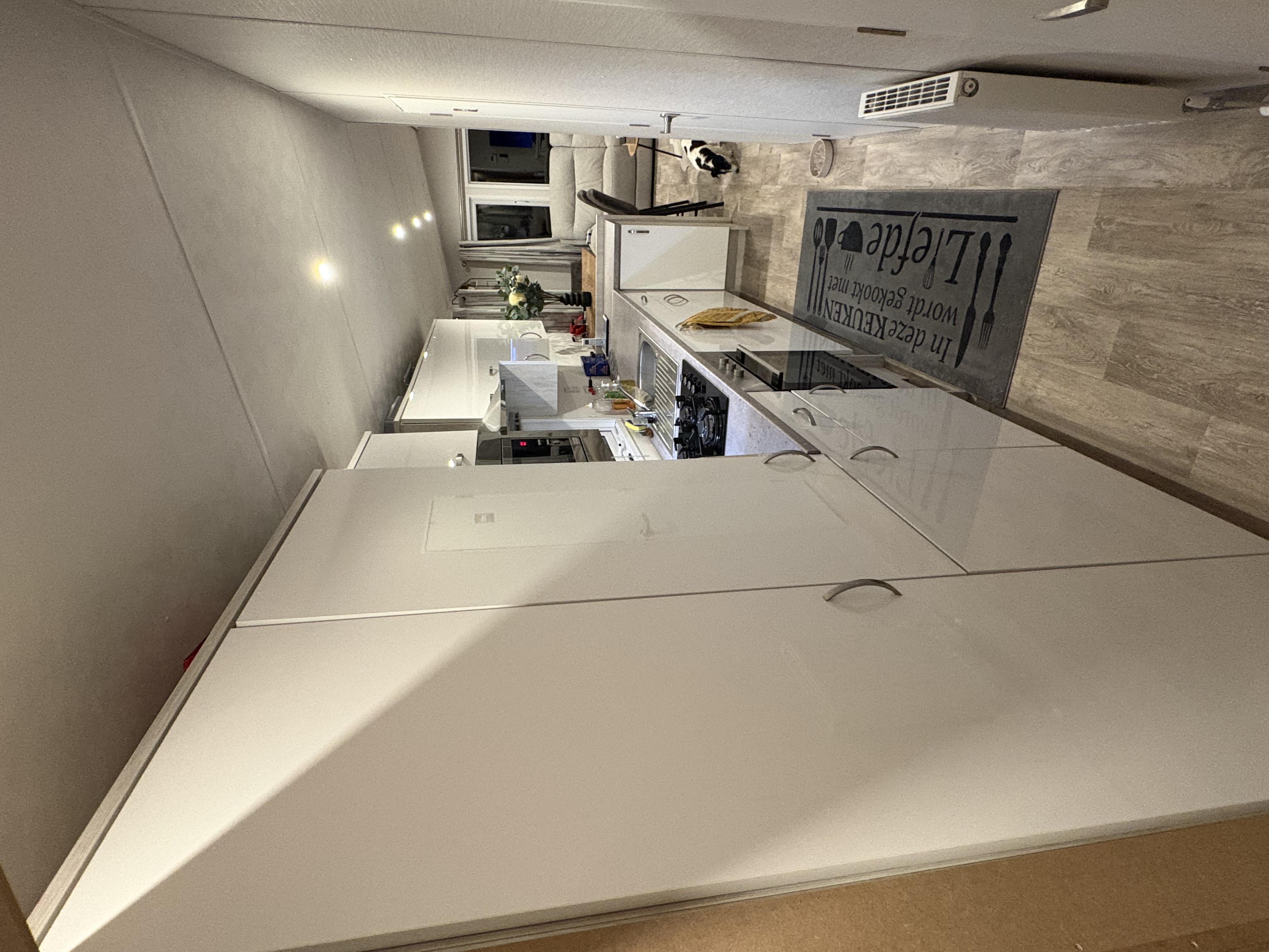 Keuken met alle toestellen , kasten in witte hoogglans