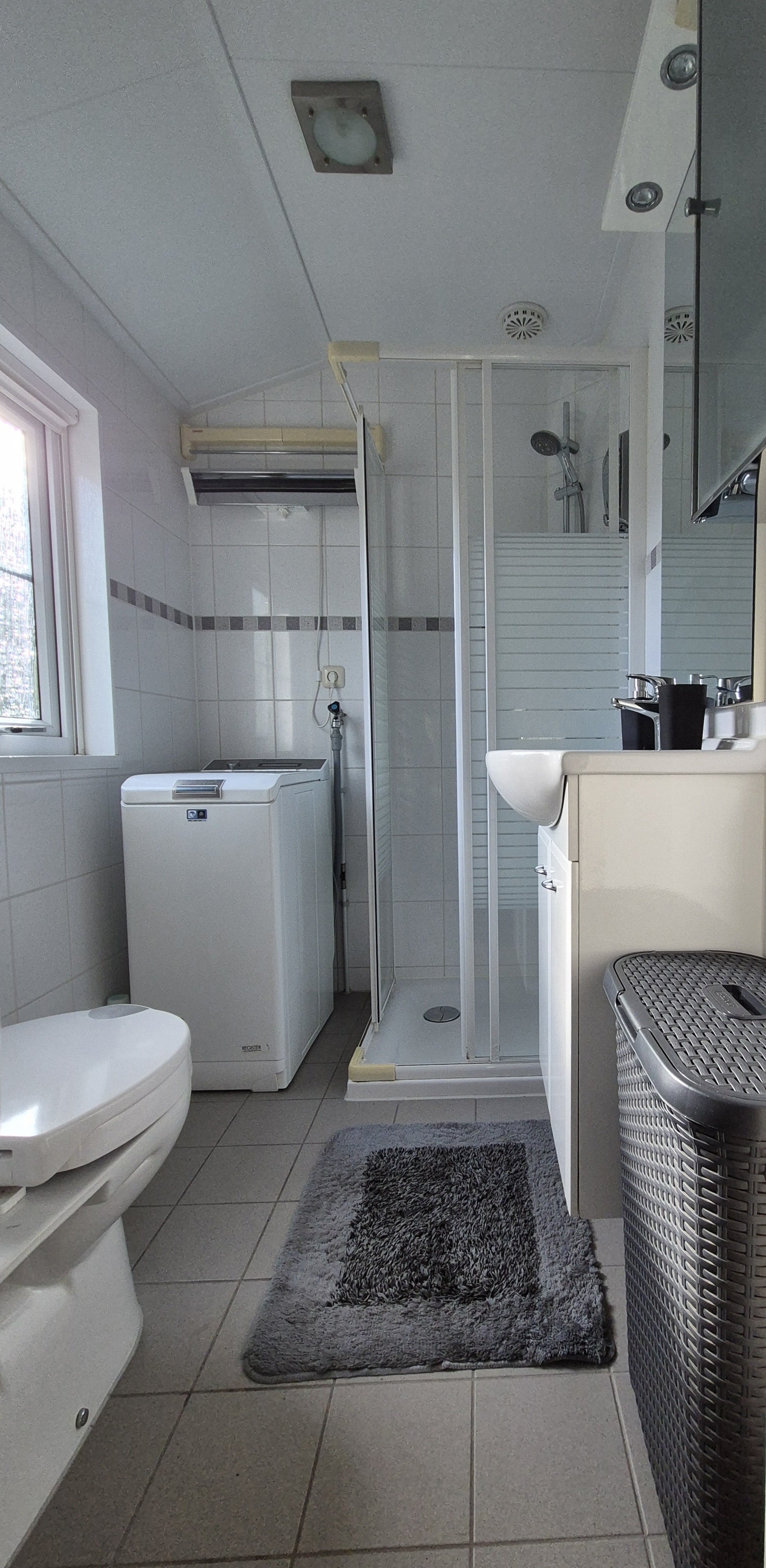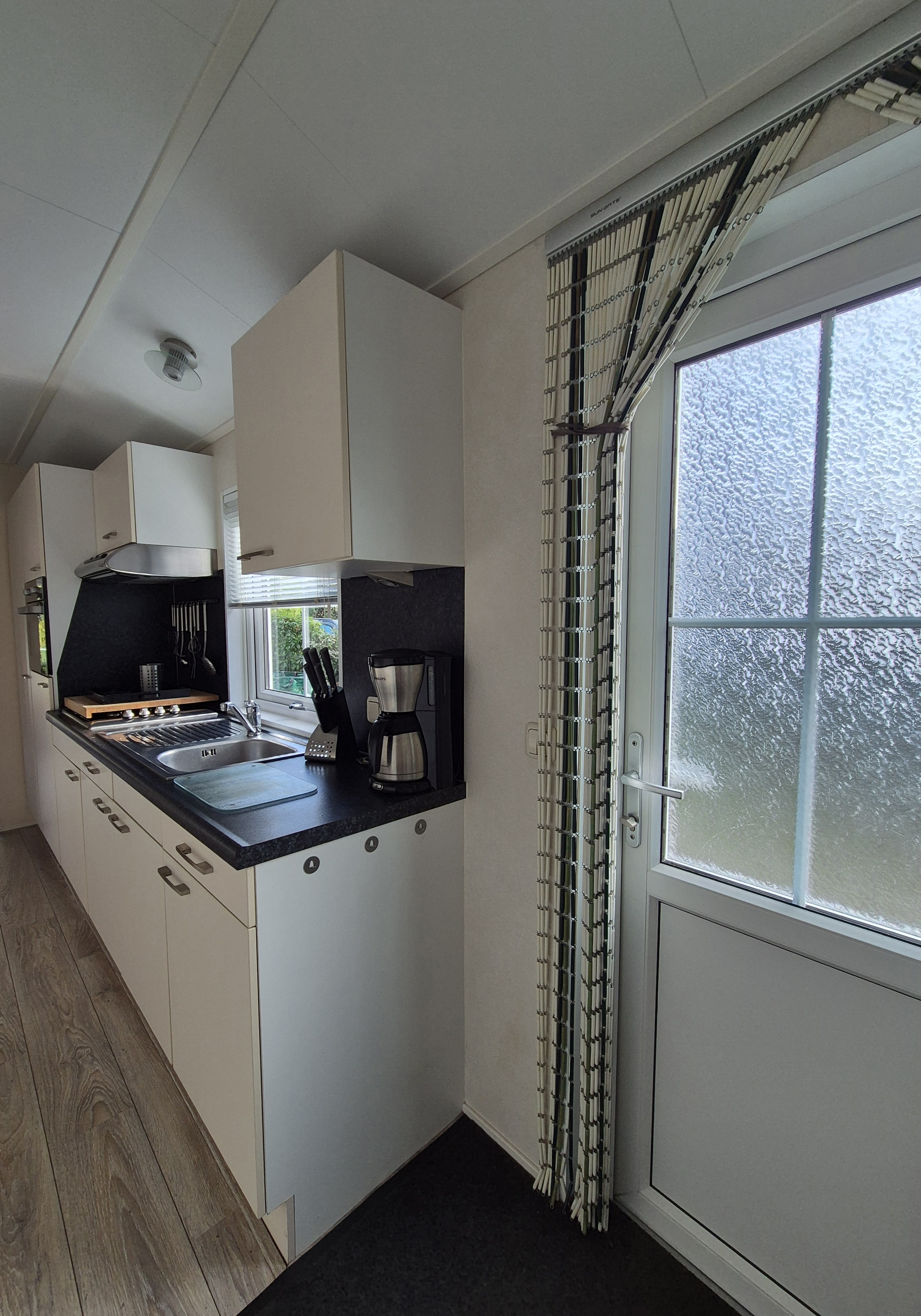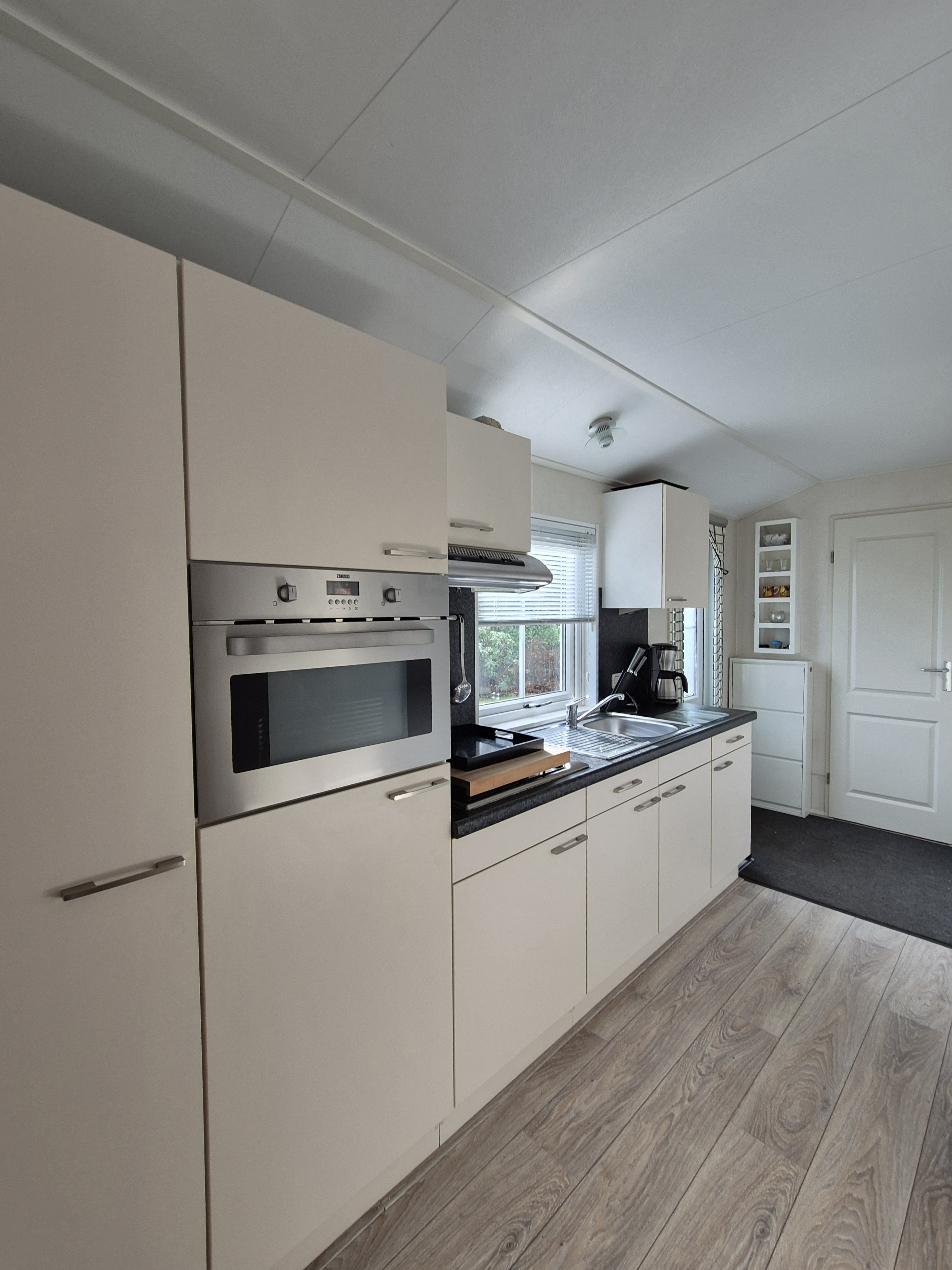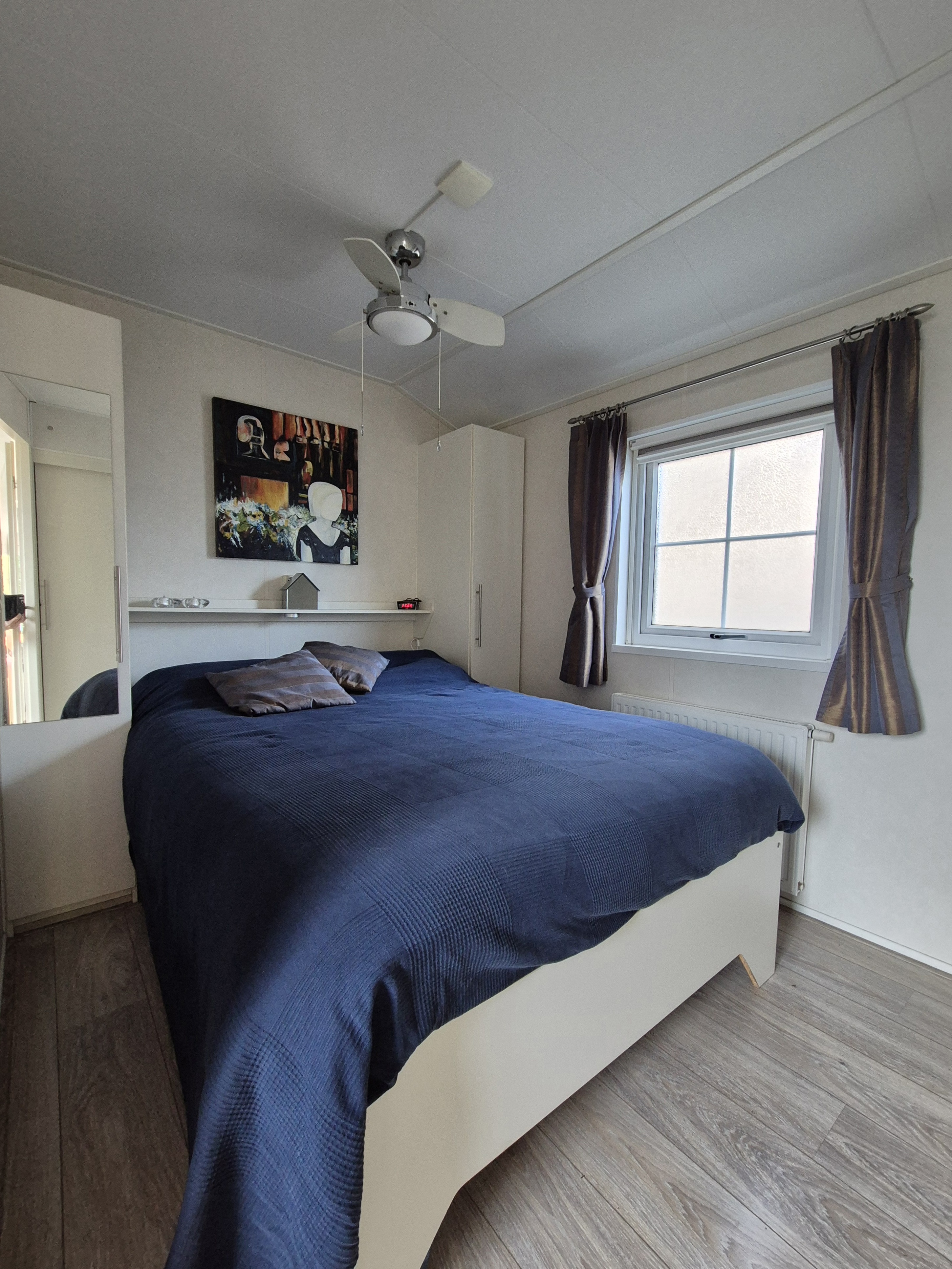 Het chalet met eigen parkeerplaats is dubbel geïsoleerd, gestoffeerd, verwarming d.m.v. cv en heeft ook een airco/verwarmingsunit. Afmeting is 12x3.95m, is gebouwd in 2008 en beschikt over 2 slaapkamers en een badkamer.