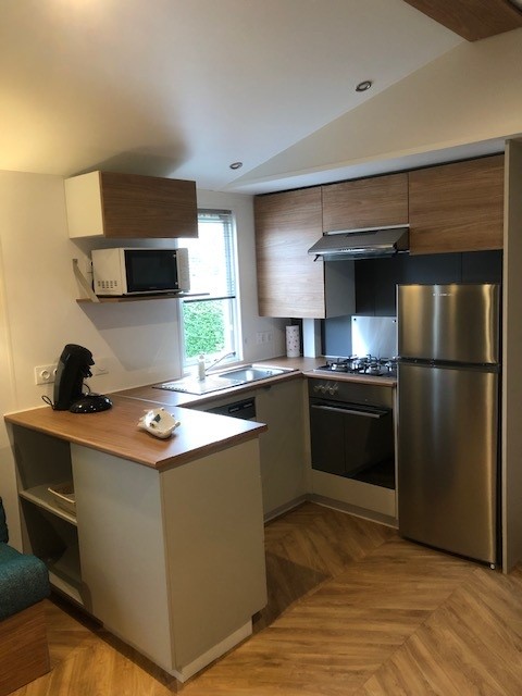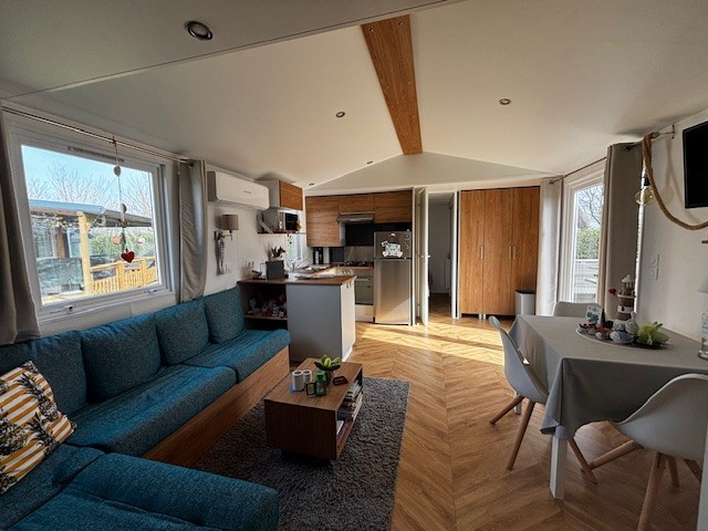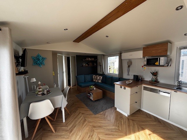 IRM Amorosa 3 D24: Geniet van rust, ruimte en comfort in dit prachtig gelegen vakantiechalet op een royale kavel, omringd door groen. Binnen stap je in een ruime leefruimte met directe toegang tot het zonnige terras – perfect voor lange zomeravonden of een kop koffie in de ochtendzon. De gezellige woonkamer is ingericht met een comfortabele L-vormige bank. Ruime, functionele U-keuken, compleet met een roestvrijstalen gasoven en geïntegreerde vaatwasser. Alles wat je nodig hebt voor een ontspannen verblijf is aanwezig. De master suite biedt comfort en walk inn-closet Bovendien is er meer dan voldoende opbergruimte, waaronder een inbouwkast bij de entree – handig voor jassen, schoenen of andere vakantiespullen.