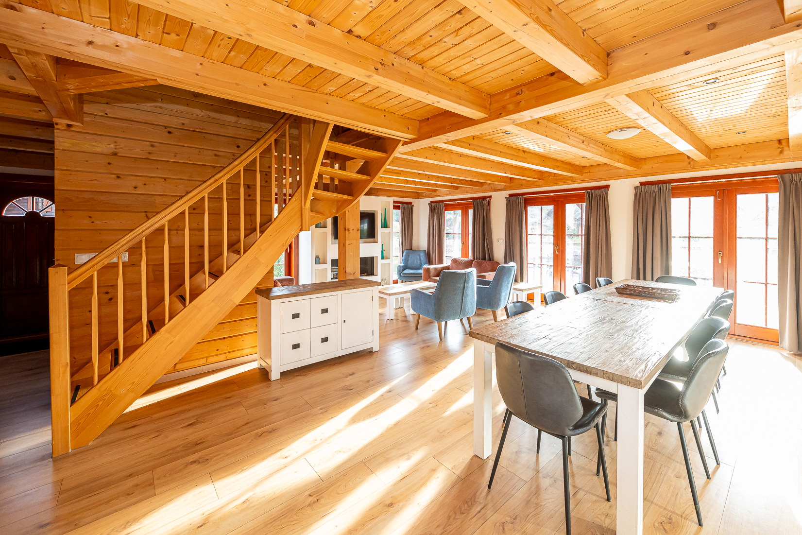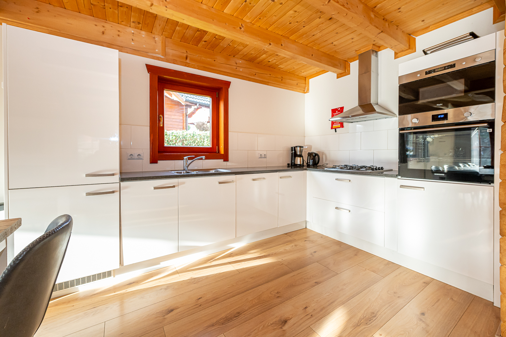 De keuken sluit mooi aan op de leefruimte en is ingericht voor intensief gebruik. Dankzij de logische indeling het ruime werkblad en de complete uitrusting voelt koken hier natuurlijk en praktisch aan. De keuken vormt daarmee een aangename plek om samen te komen of uitgebreid te koken tijdens een ontspannen verblijf.