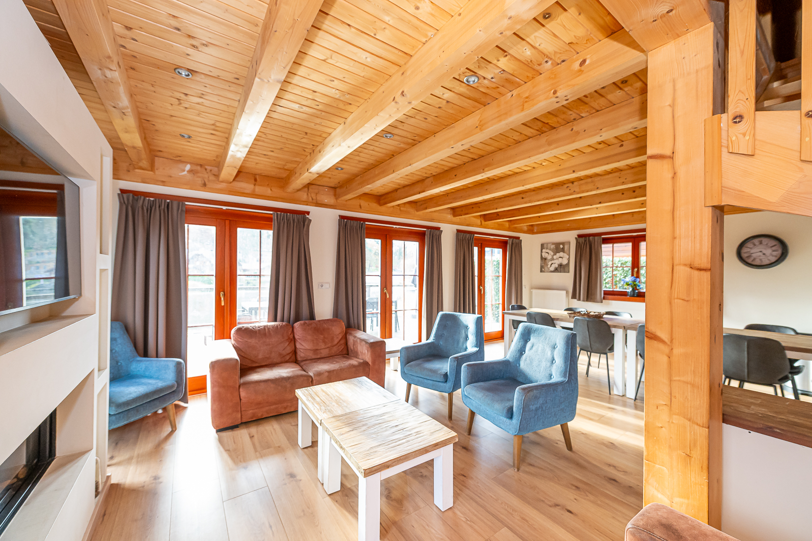 De woning is verdeeld over meerdere verdiepingen en beschikt over vijf volwaardige slaapkamers waardoor zowel gezinnen als grotere gezelschappen comfortabel kunnen verblijven.