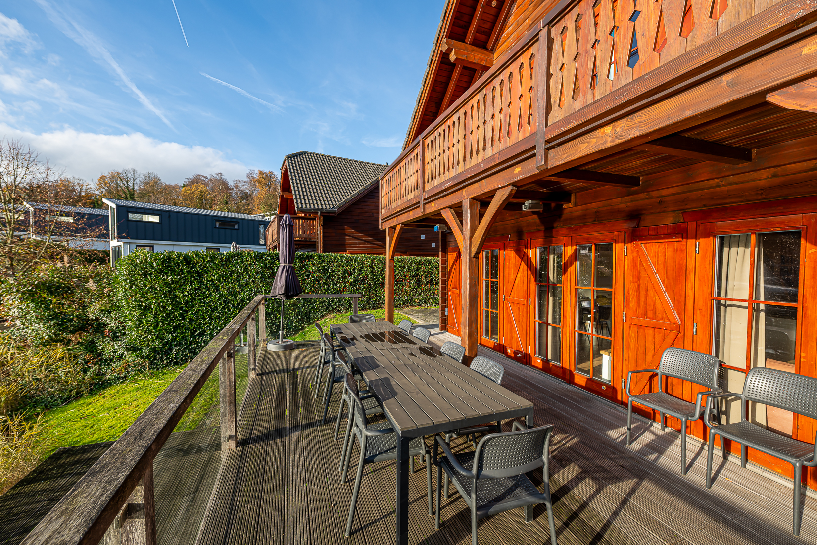 De woonkamer voelt ruim en ontspannen aan door de royale raampartijen die veel daglicht binnenlaten. Vanuit de leefruimte kijk je uit over het water wat vooral vanaf het terras een indrukwekkend decor vormt. Binnen is voldoende plek voor een comfortabele zithoek en een uitnodigende eettafel die centraal staat tijdens vakanties met familie of vrienden. Ook bij langere verblijven blijft het binnenklimaat aangenaam dankzij de moderne installaties en de goede isolatie.