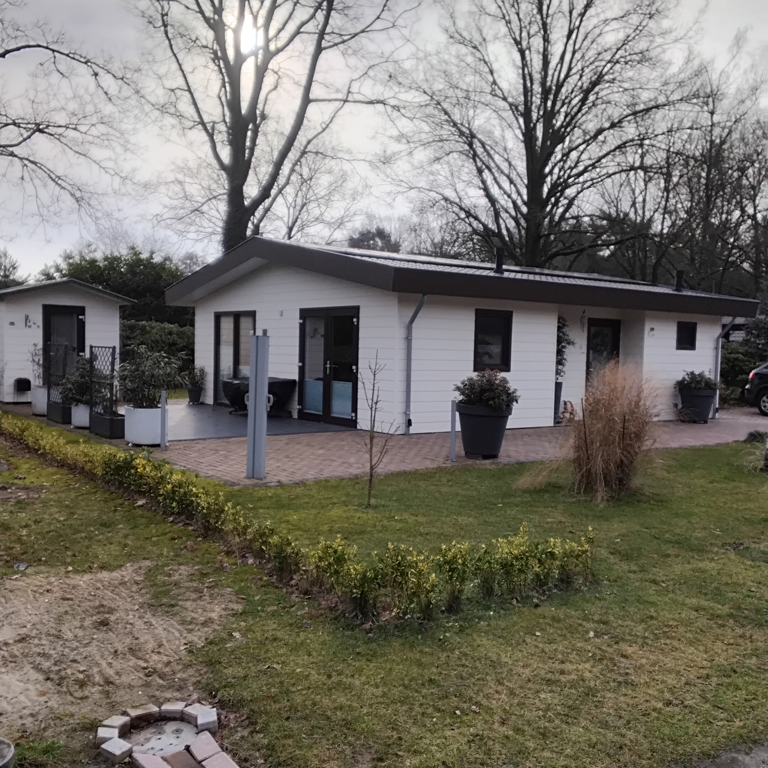 Wunderschönes Chalet auf dem Landgoed Nederheide (https://landgoednederheide.nl) zu verkaufen. Das 2023 erbaute Chalet umfasst 80 qm Wohnfläche und ist eingerichtet u.a. mit einer Einbauküche incl. amerikanischem Kühlschrank, Fußbodenheizung, Einbauschränken in beiden Schlafzimmern , maßgefertigter Insektenschutz an allen Fenstern uvm. Ein Hauswirtschaftsraum erleichtert den Alltag. Dank 30 Solarpanele incl. Wärmepumpe ist man stromautark. Ein Überschuß wird erstattet. Das dazugehörige Gartenhäuschen ist bestückt ist mit allen Geräten, die man zu Pflege des 400 qm Grundstückes braucht. Ein großer Landmann E-Grill ist ebenfalls vorhanden. Die Jahrespacht beträgt 4000 € jährlich. Billiger kann man nicht wohnen.