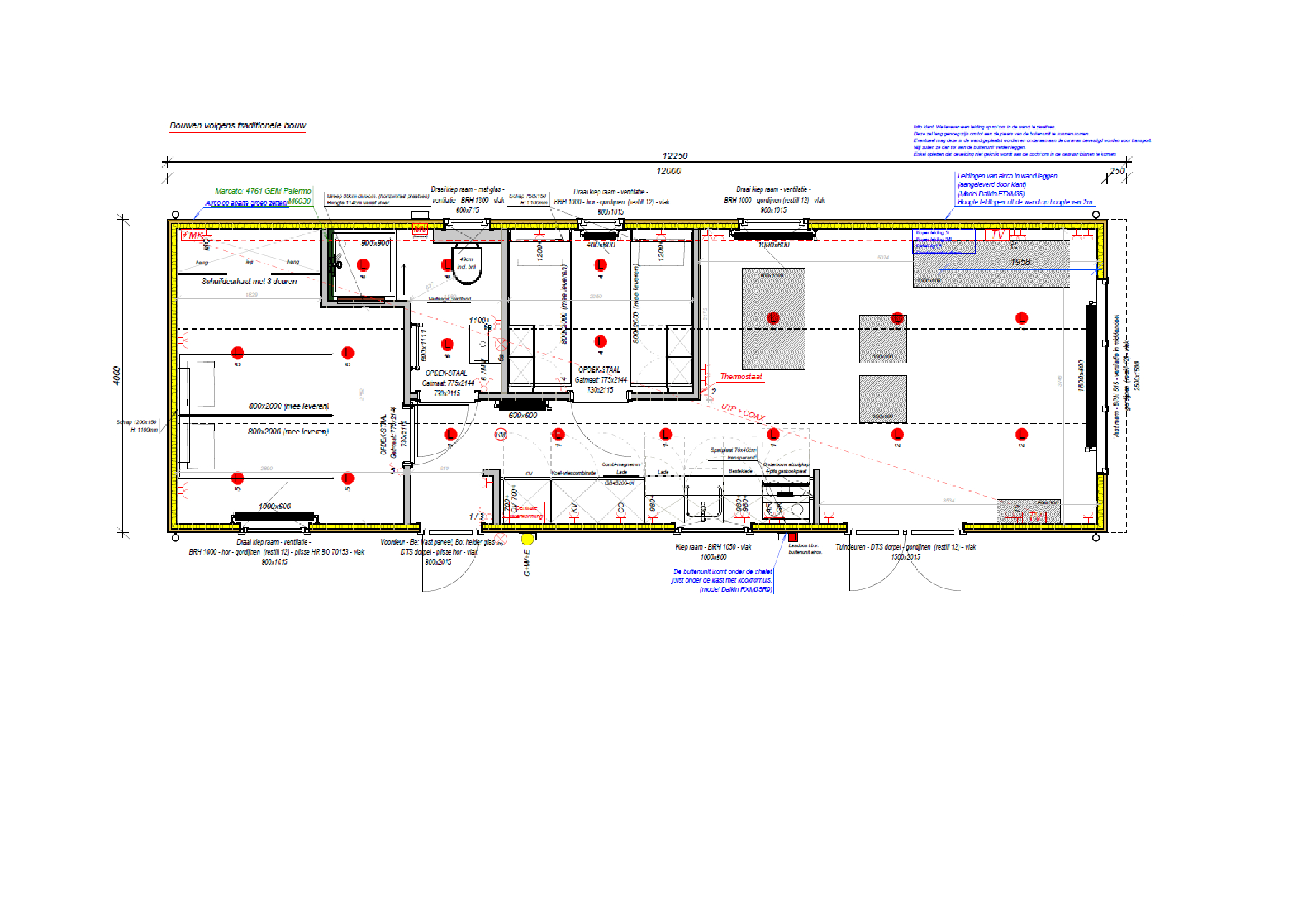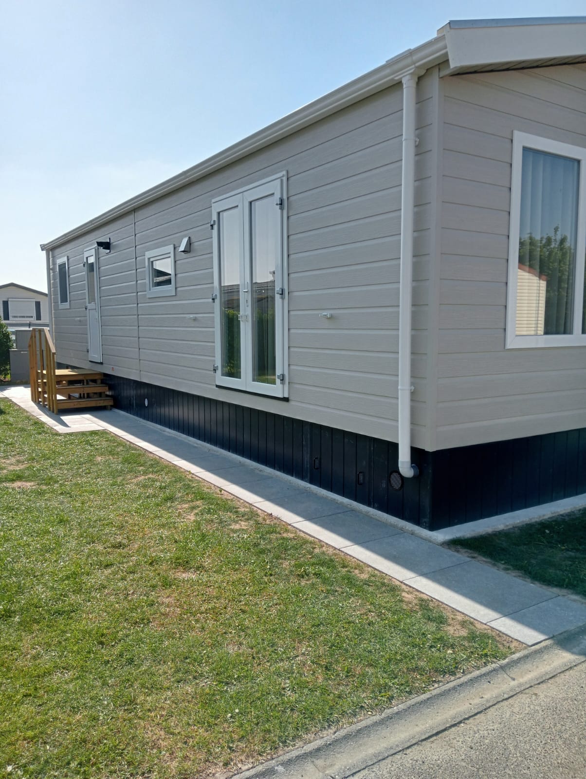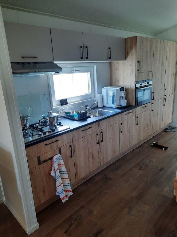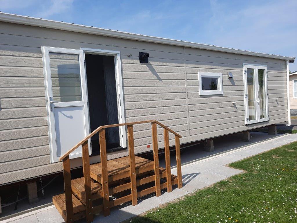 splinternieuwe chalet Sorrento Special lengte 12m x 4m, volledig geïsoleerd bouwjaar 04/2025 wordt verkocht wegens aankoop appartement aan de kust