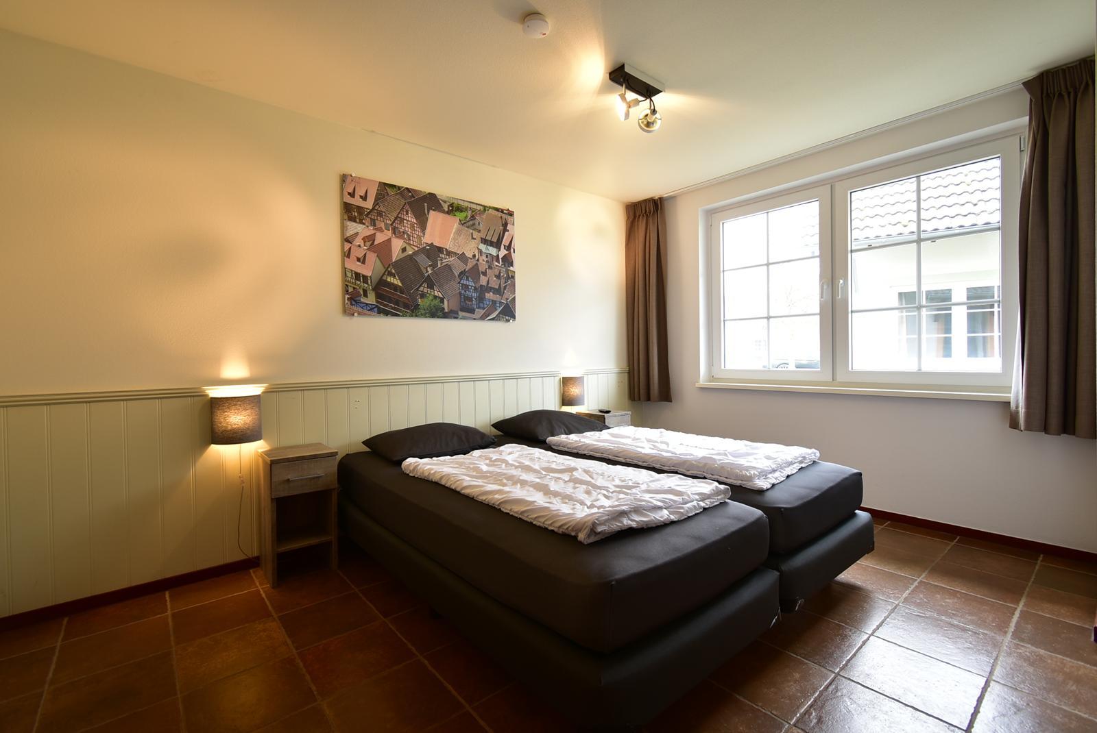 Nette slaapkamer met twee 1-persoonsbedden, daglicht via het raam en een rustige afwerking. Een fijne kamer voor volwassenen of (oudere) kinderen, met een praktische indeling.