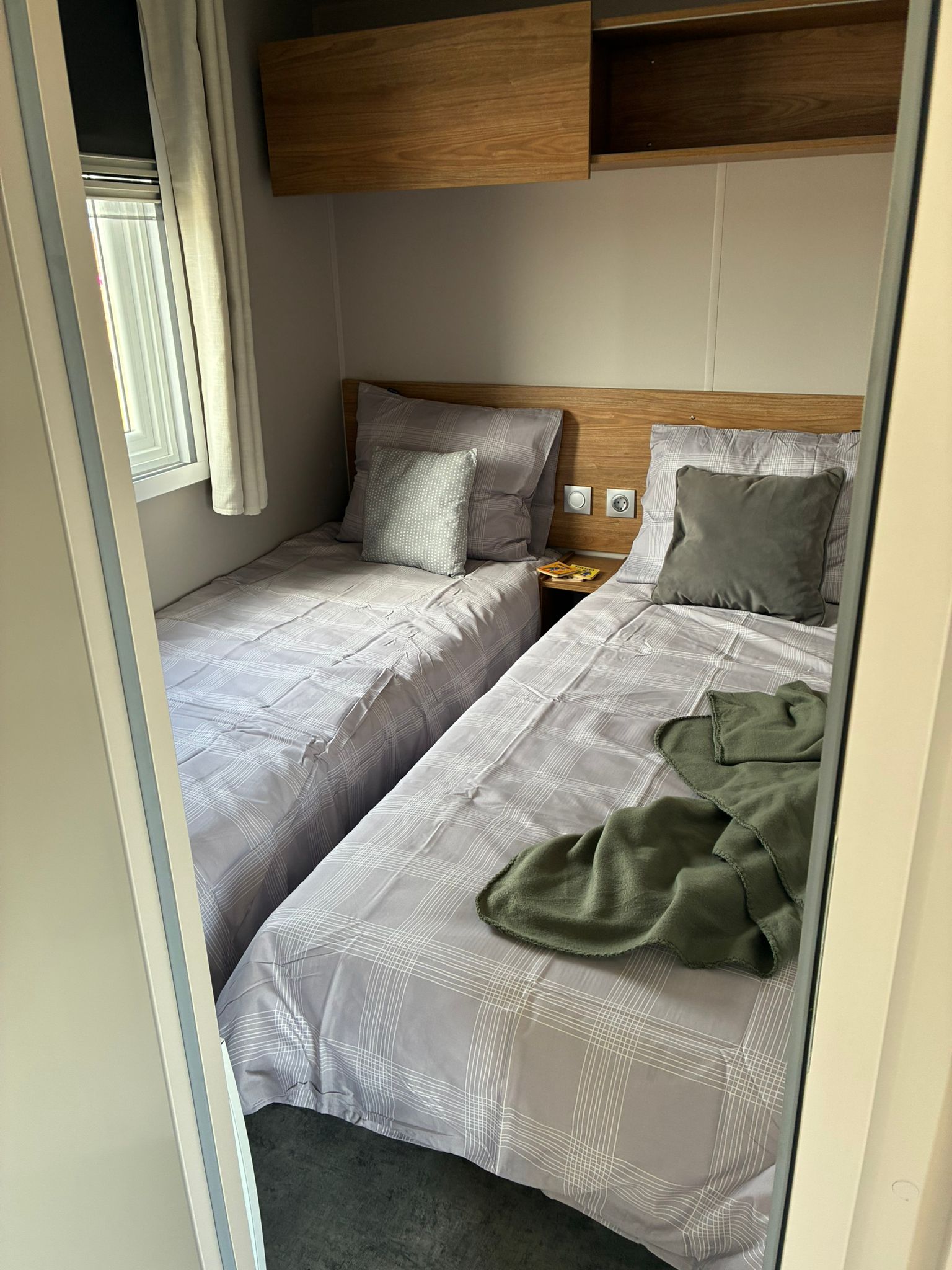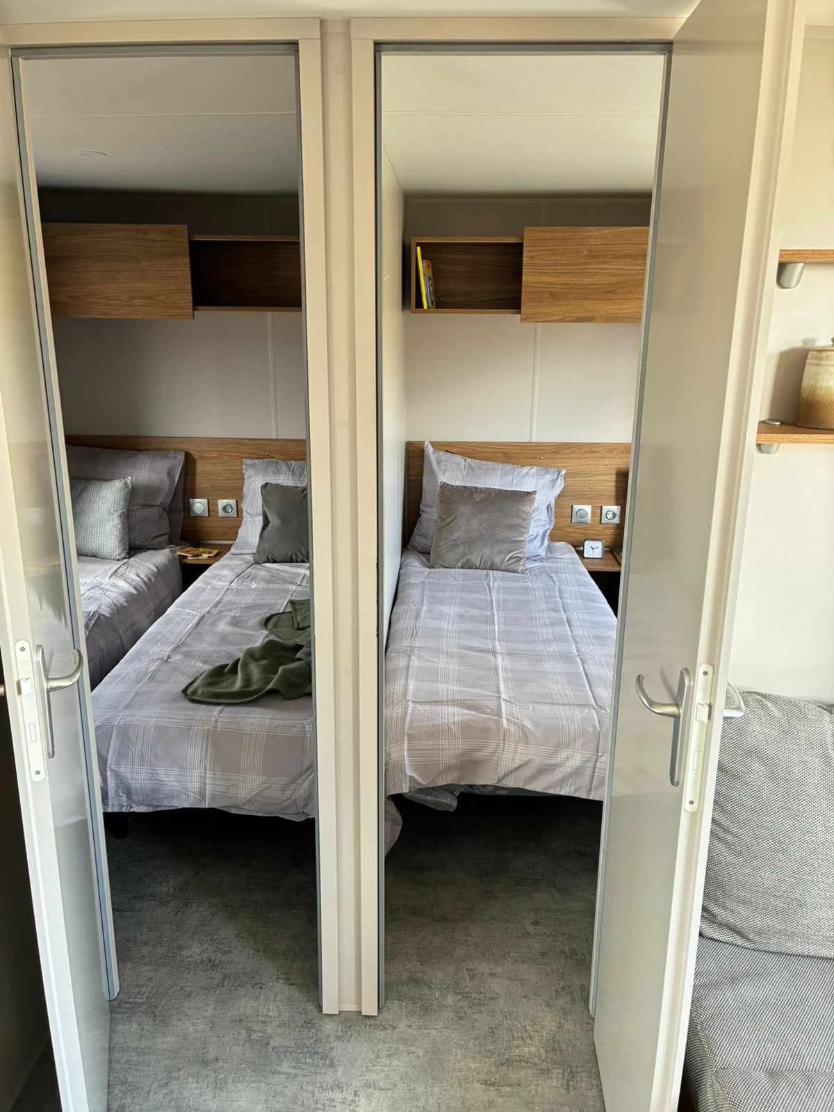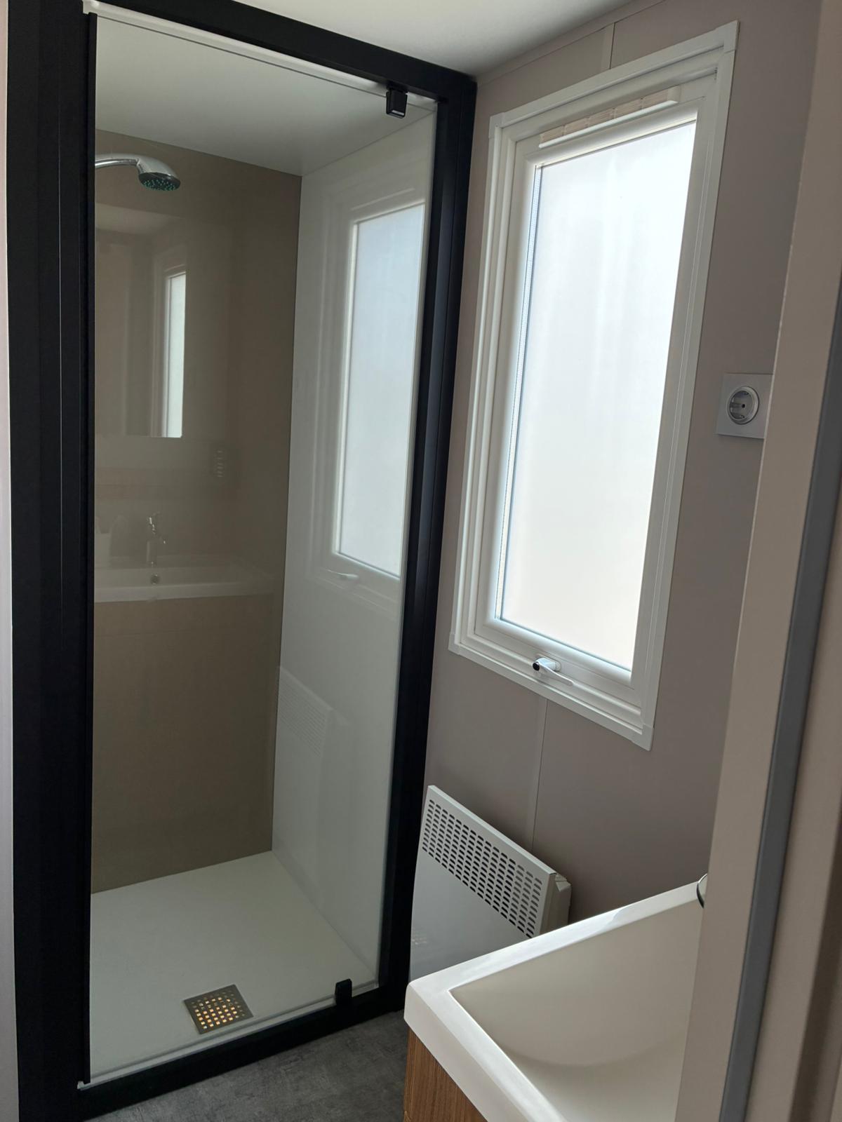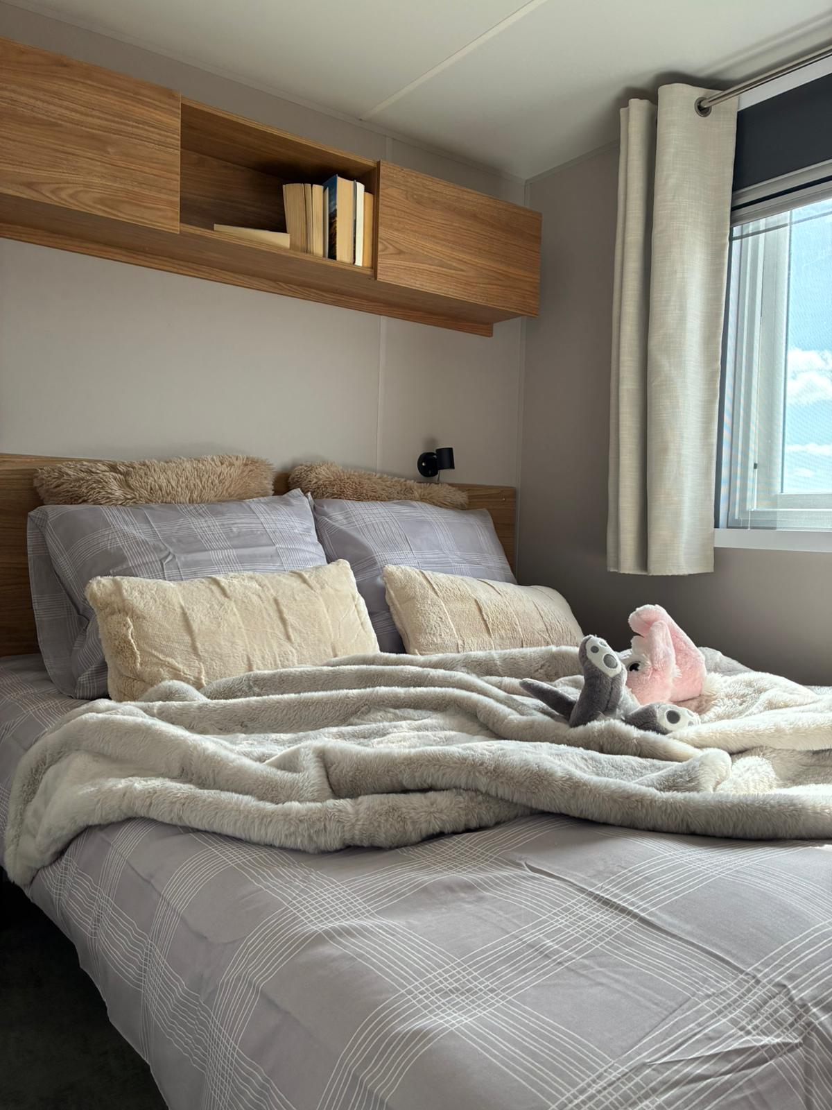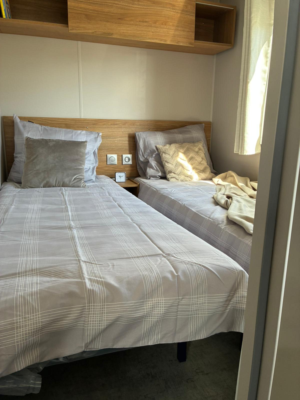 Het betreft een showmodel, dit betekend dat er nog nooit geslapen is in het chalet en dat het nog geen vaste plek heeft. U kunt een jaarplaats uitkiezen met de verkoopadviseur.