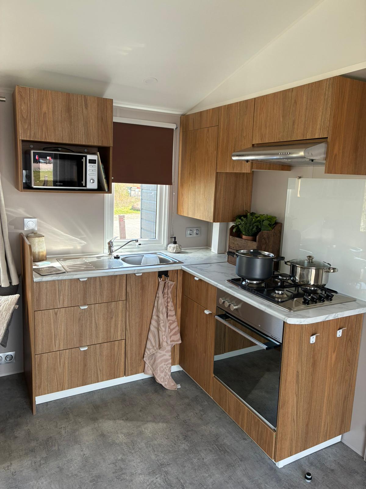 Compact chalet met alles wat u nodig heeft voor een aangenaam verblijf. Het chalet heeft 3 slaapkamers een badkamer en een appart toilet. De moderne keuken, in hoekopstelling, in het midden van de ruimte zorgt ervoor dat u voldoende werkruimte heeft om de lekkerste gerechten klaar te maken. Loungen kunt op de fijne hoekbank die tevens te gebruiken is als slaapbank.