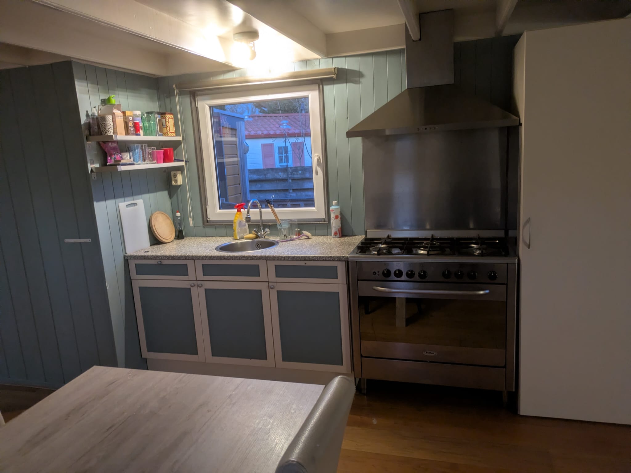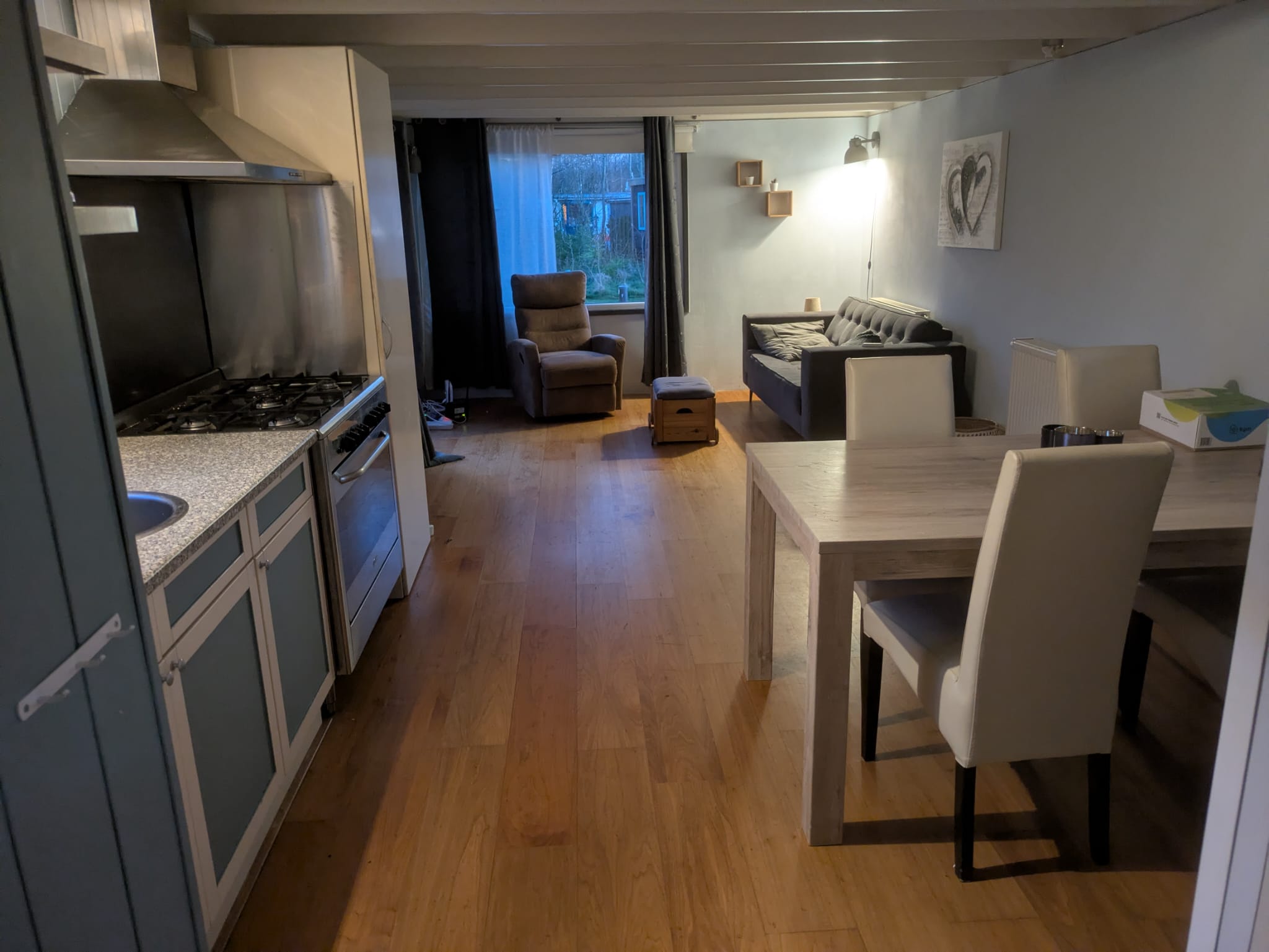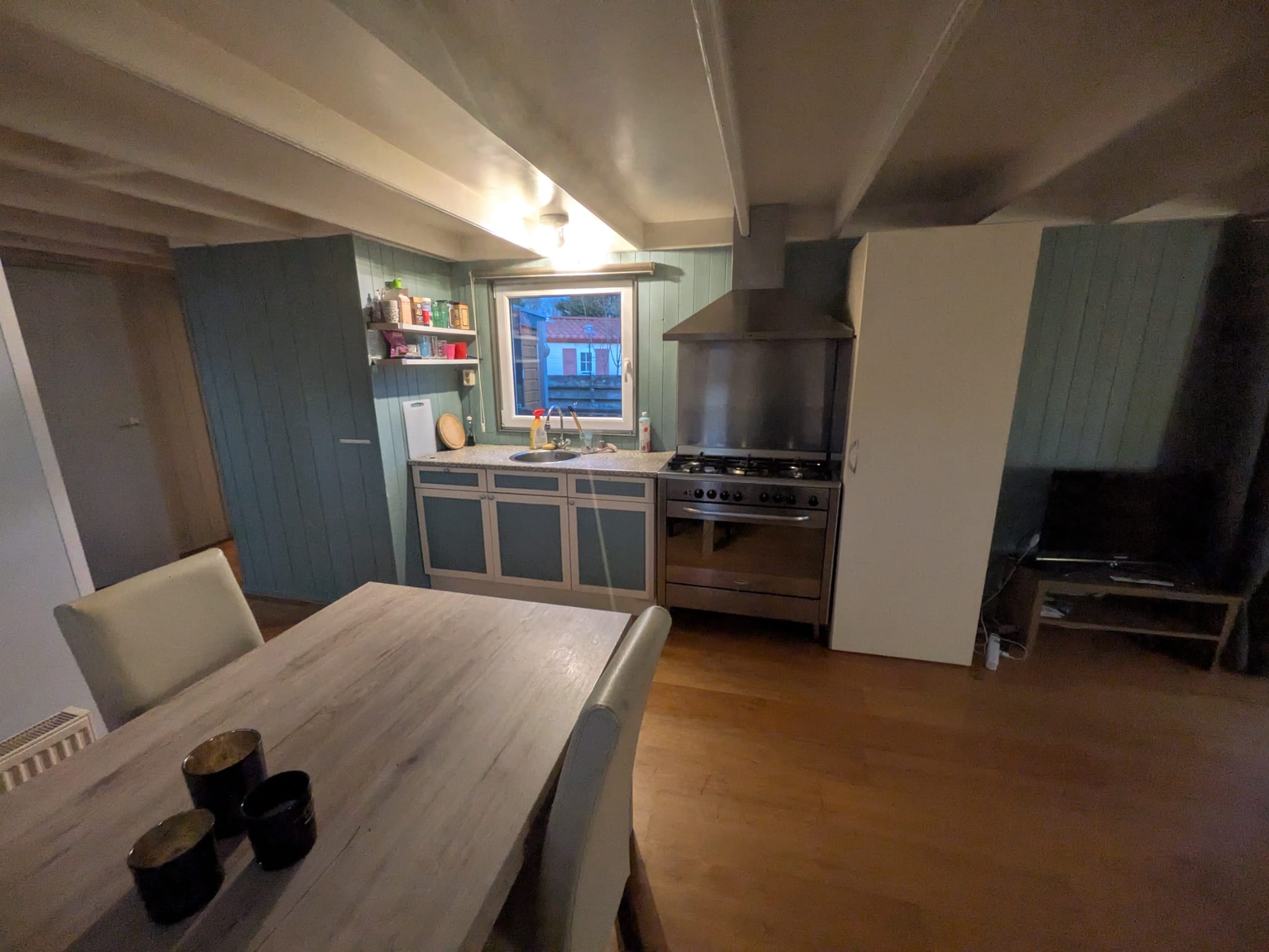 Er is een fijne keuken met 6 pits gaskookstel en grote oven. Veel ramen en 1 slaapkamer met tweepersoonsbed 160m.